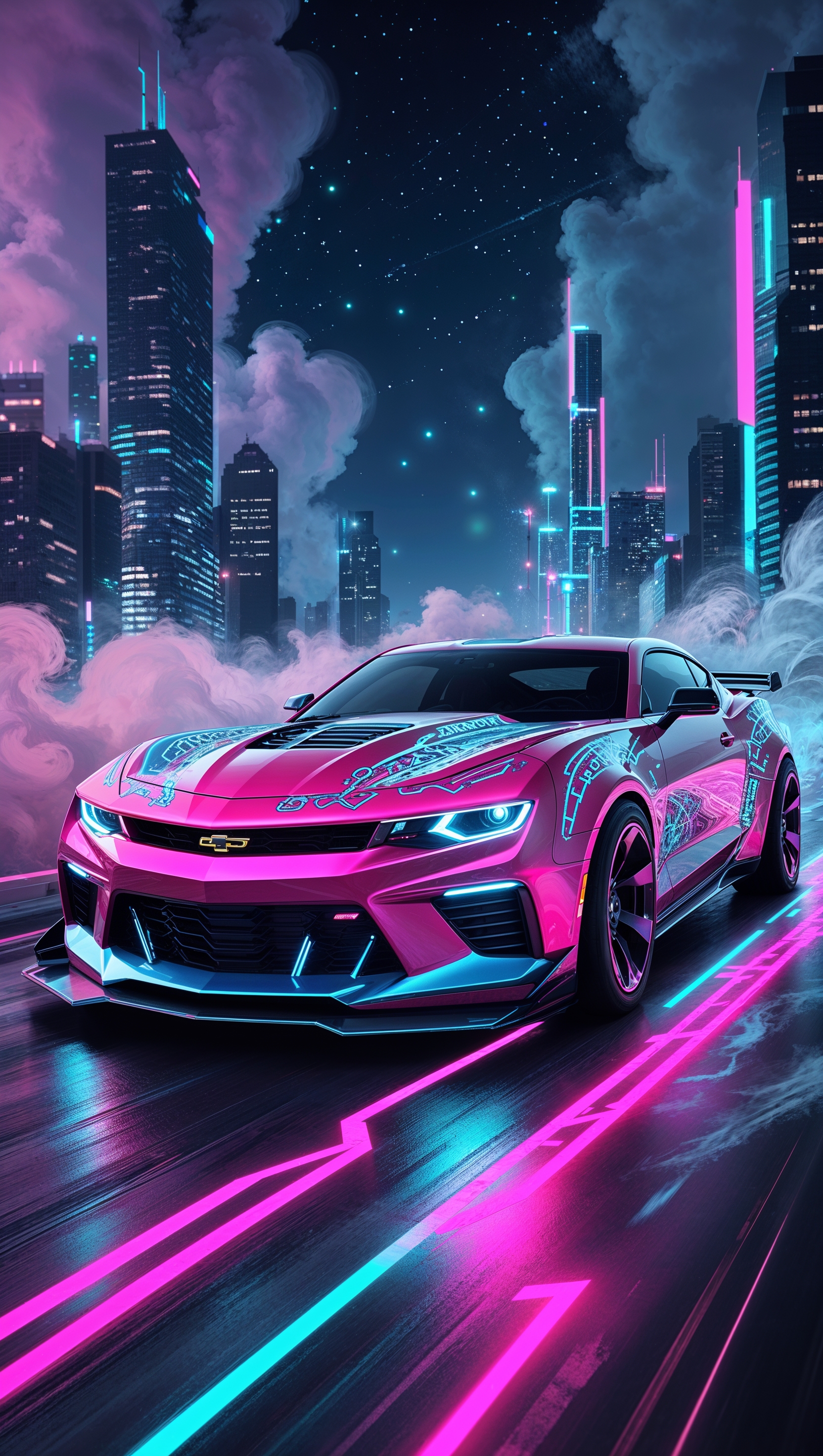 1664x2944 Fantasy image of Camaro with futuristic effects