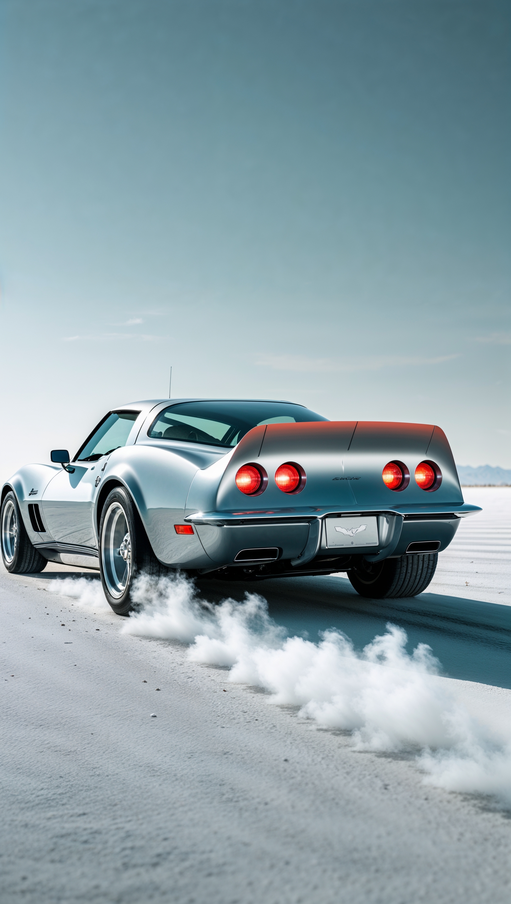 1664x2944 A Chevy Corvette racing on the salt flats, minimal style, iPhone wallpaper