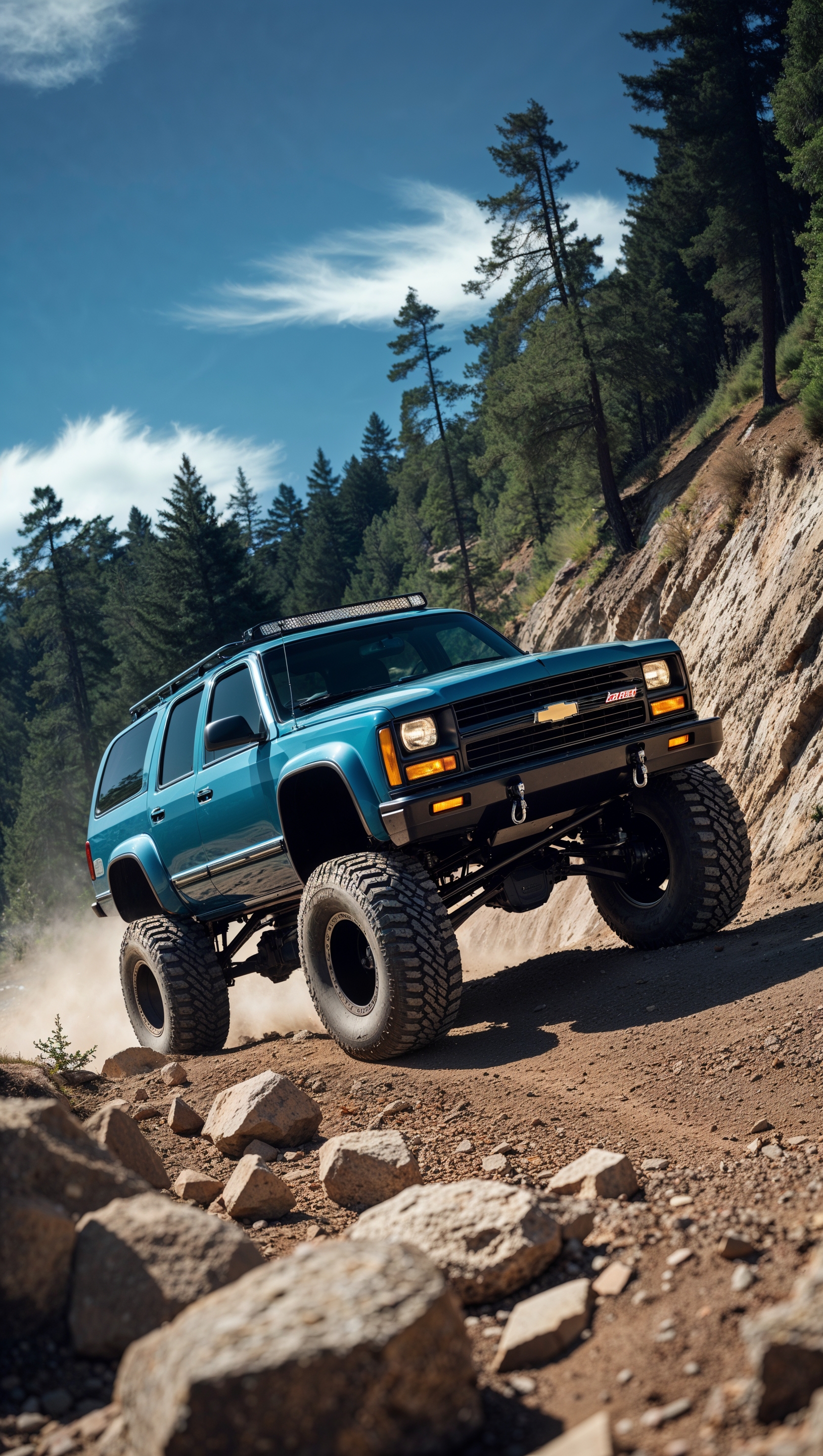 1664x2944 Off-road Chevy Blazer climbing a rocky hill, adventure scene, iPhone wallpaper