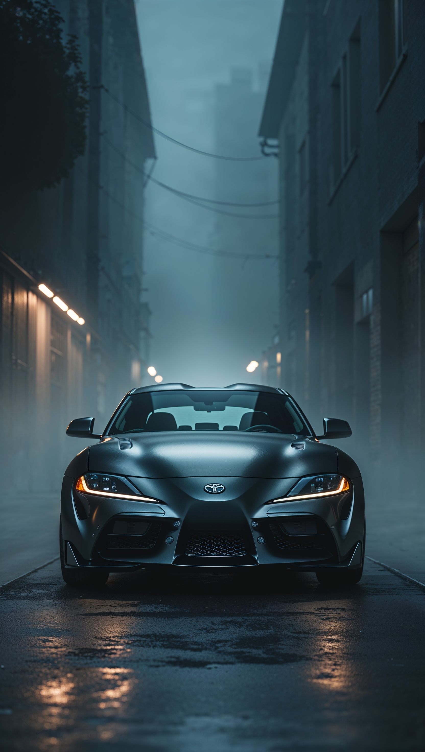 Matte black Toyota Supra in a foggy alley, moody iPhone wallpaper 1664x2944 Matte black Toyota Supra in a foggy alley, moody iPhone wallpaper