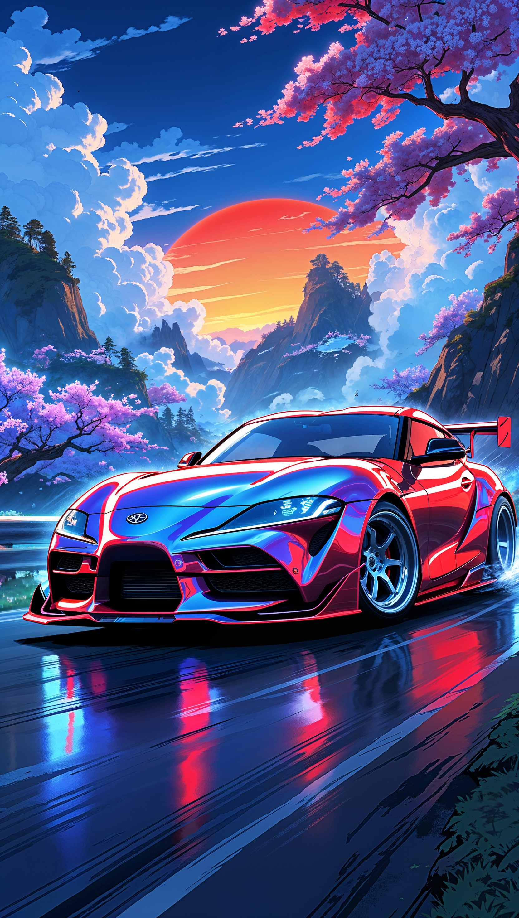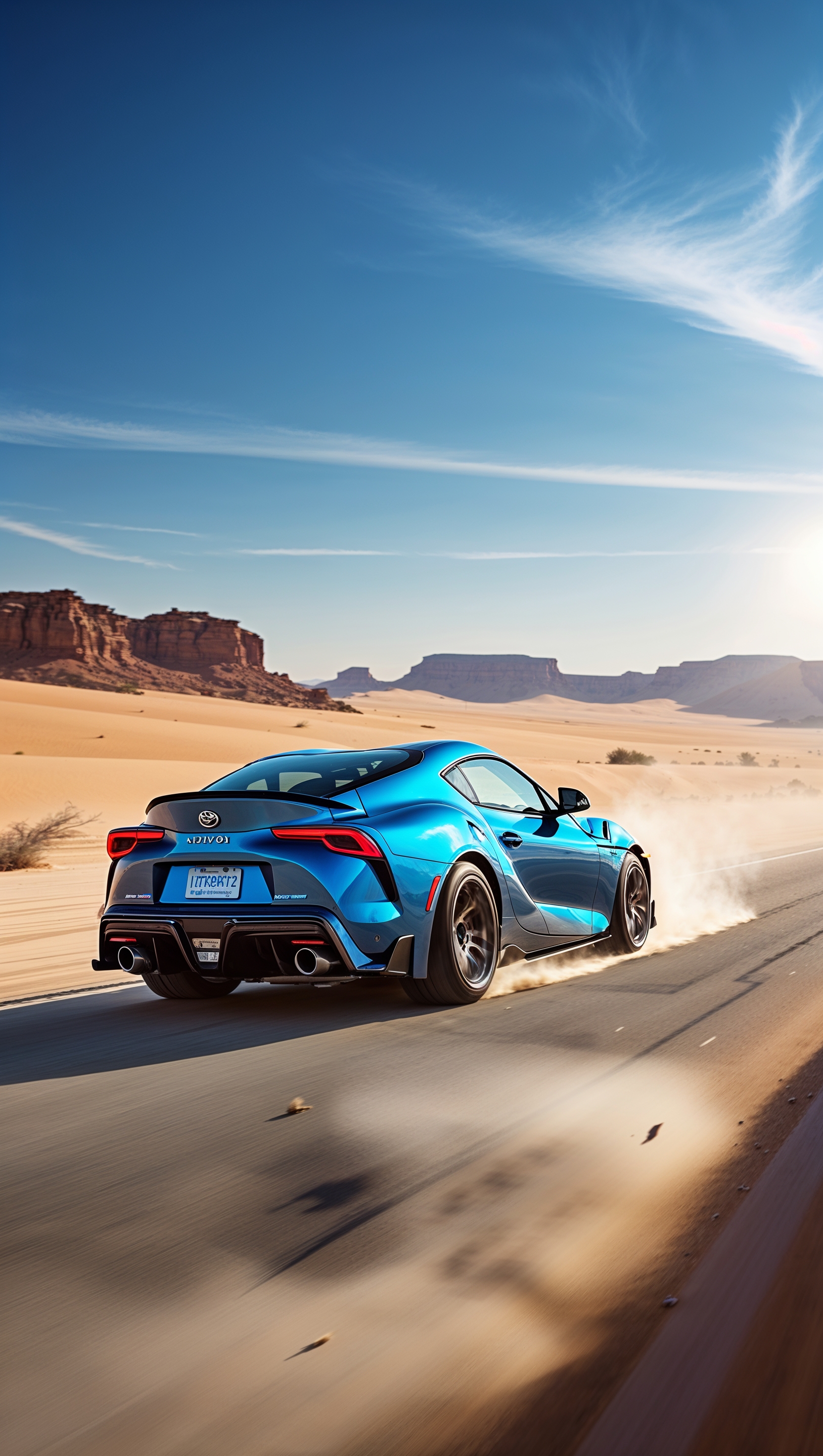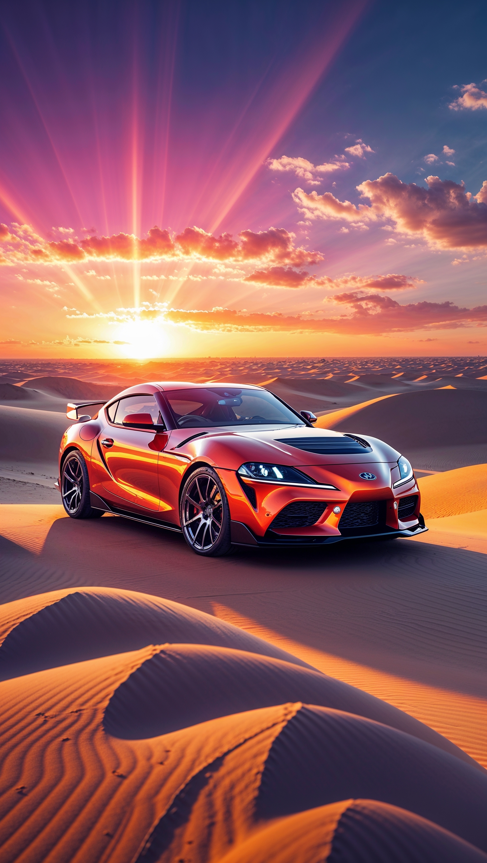 Supra with desert sunset background and lens flare 1664x2944 Supra with desert sunset background and lens flare