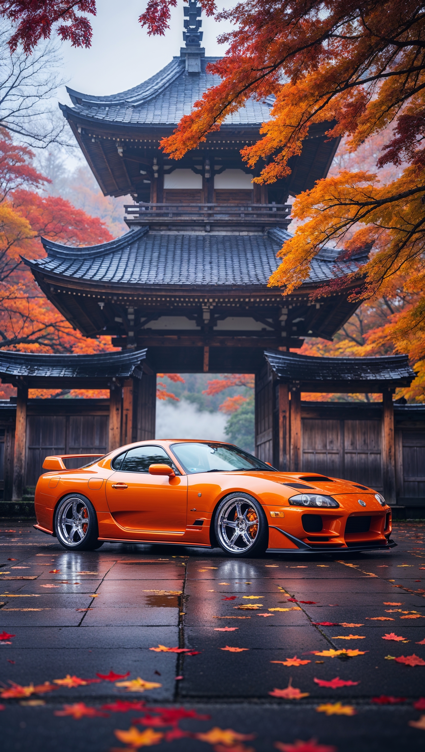 Supra parked in front of a Japanese temple in autumn, peaceful wallpaper 1664x2944 Supra parked in front of a Japanese temple in autumn, peaceful wallpaper
