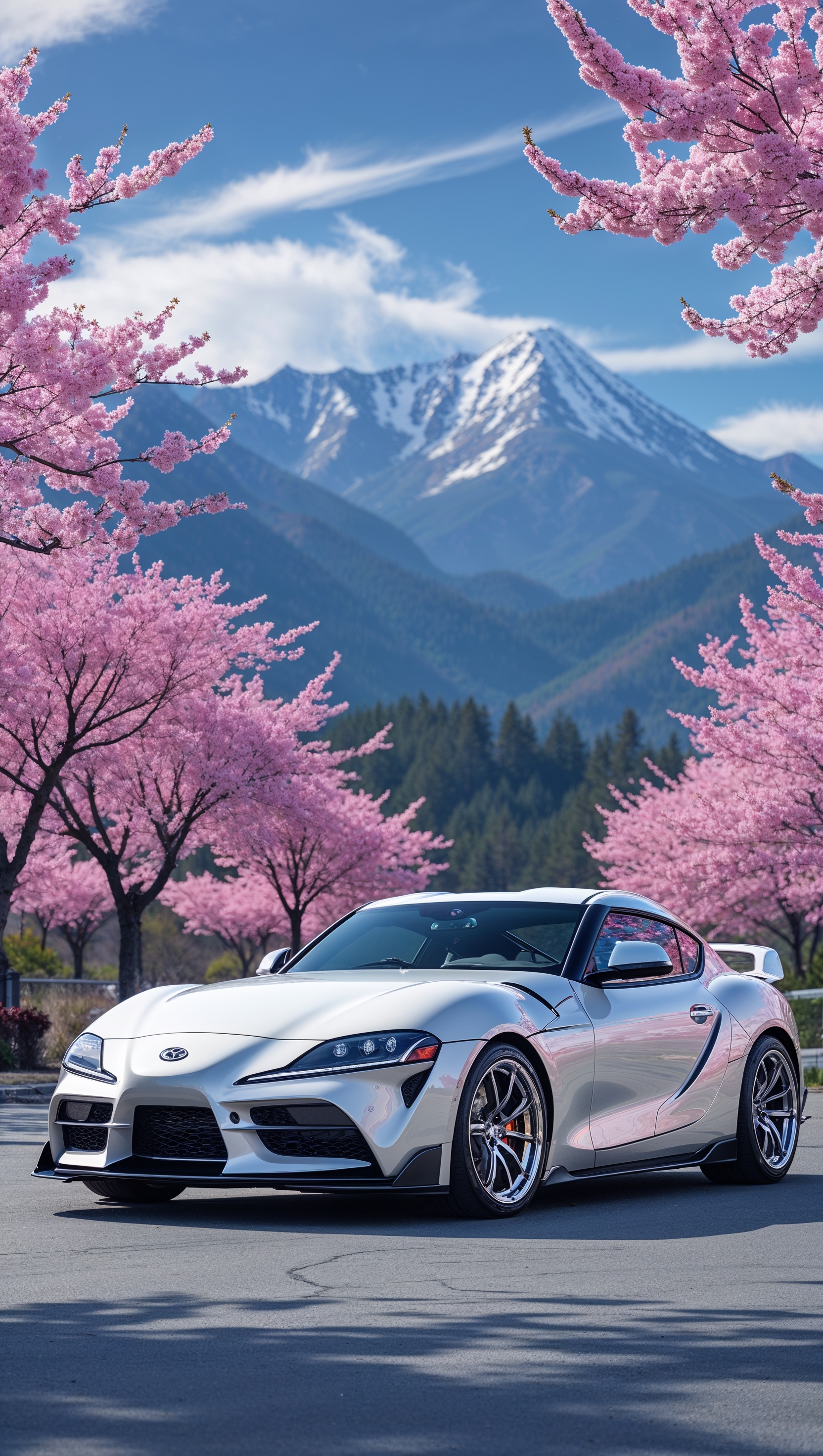 White Supra with mountain background and cherry blossoms 1664x2944 White Supra with mountain background and cherry blossoms