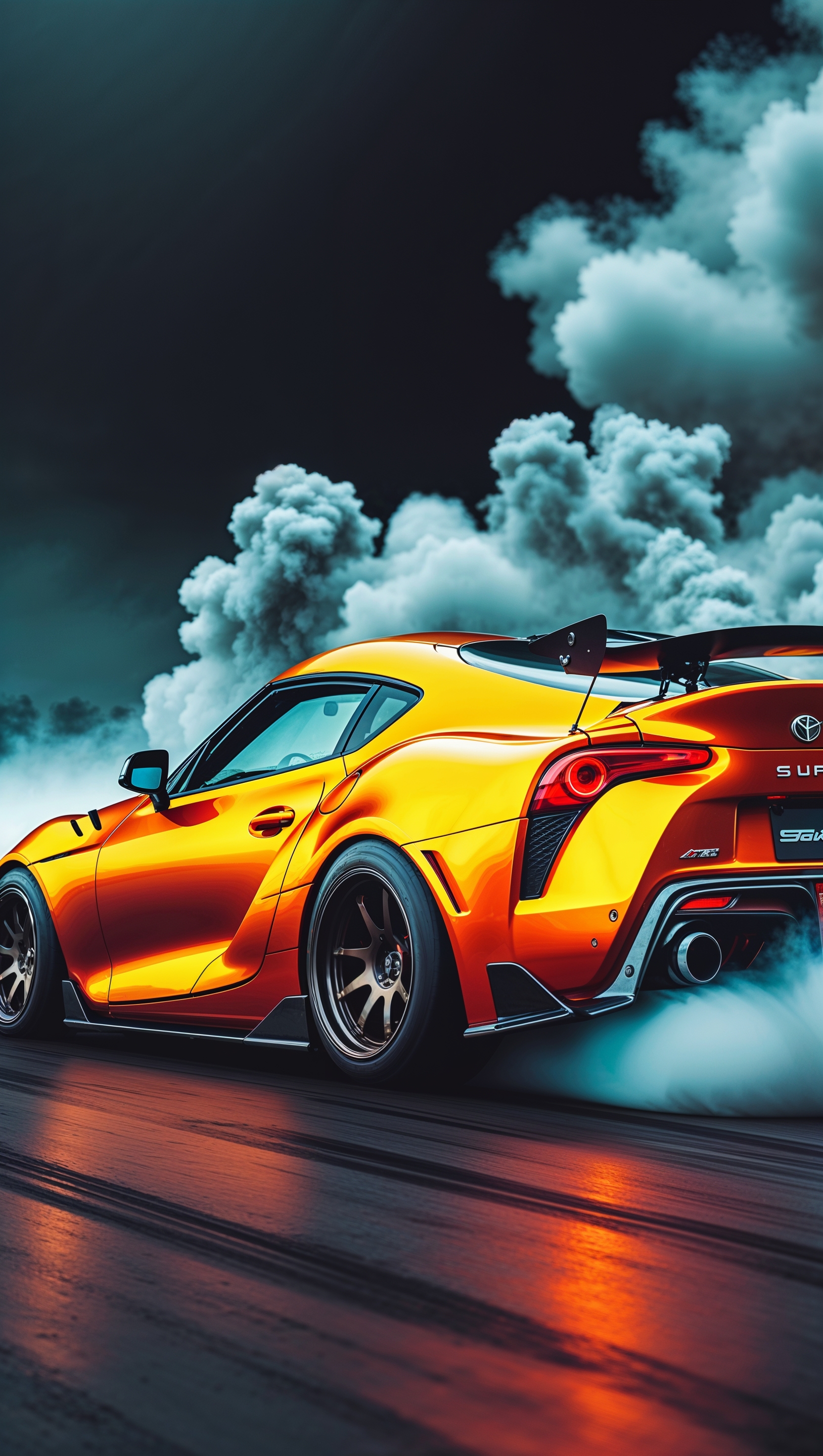 Orange Toyota Supra drifting with smoke, cinematic style wallpaper 1664x2944 Orange Toyota Supra drifting with smoke, cinematic style wallpaper