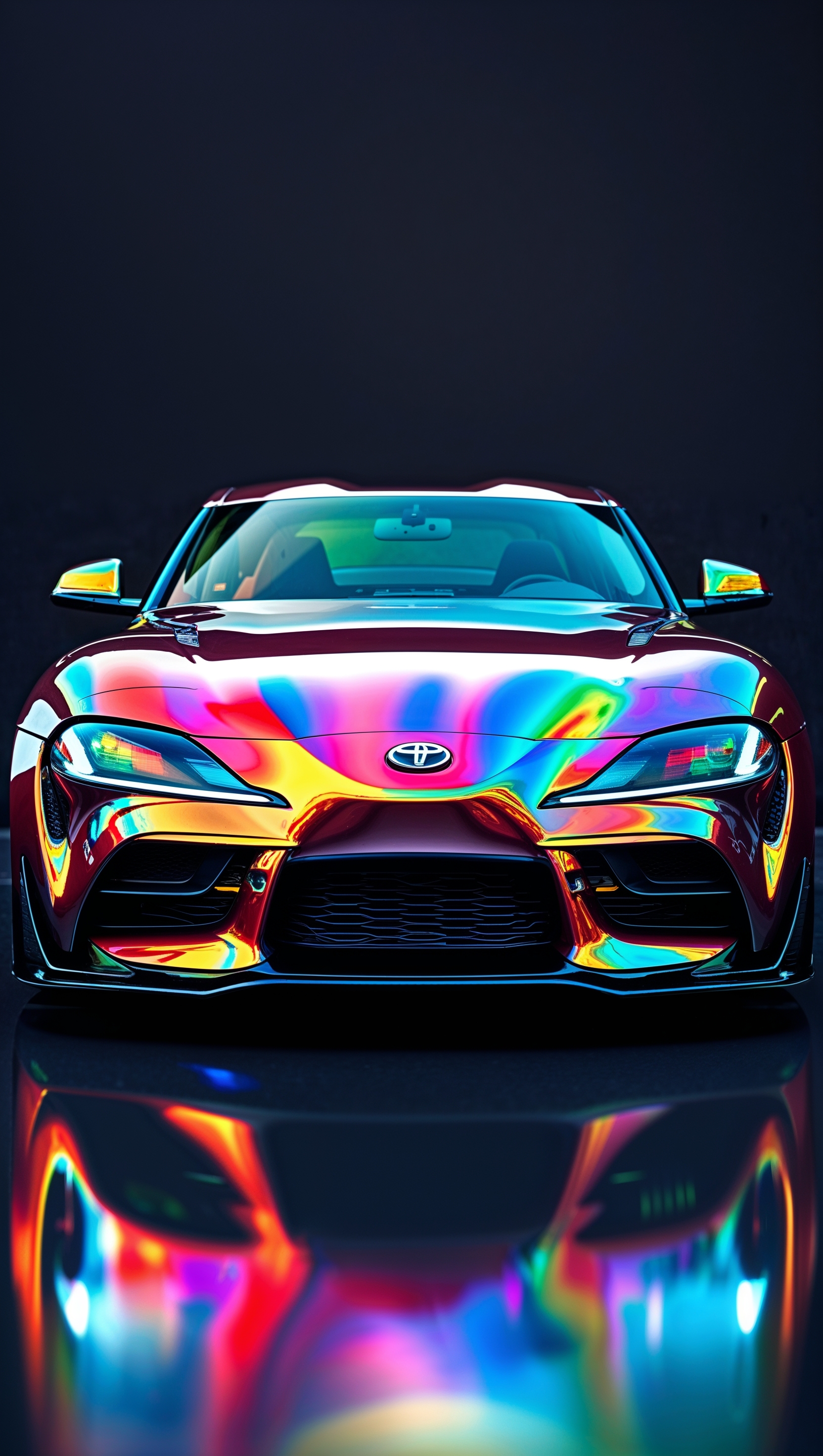 Toyota Supra MK4 front view with colorful reflections, iPhone wallpaper 1664x2944 Toyota Supra MK4 front view with colorful reflections, iPhone wallpaper