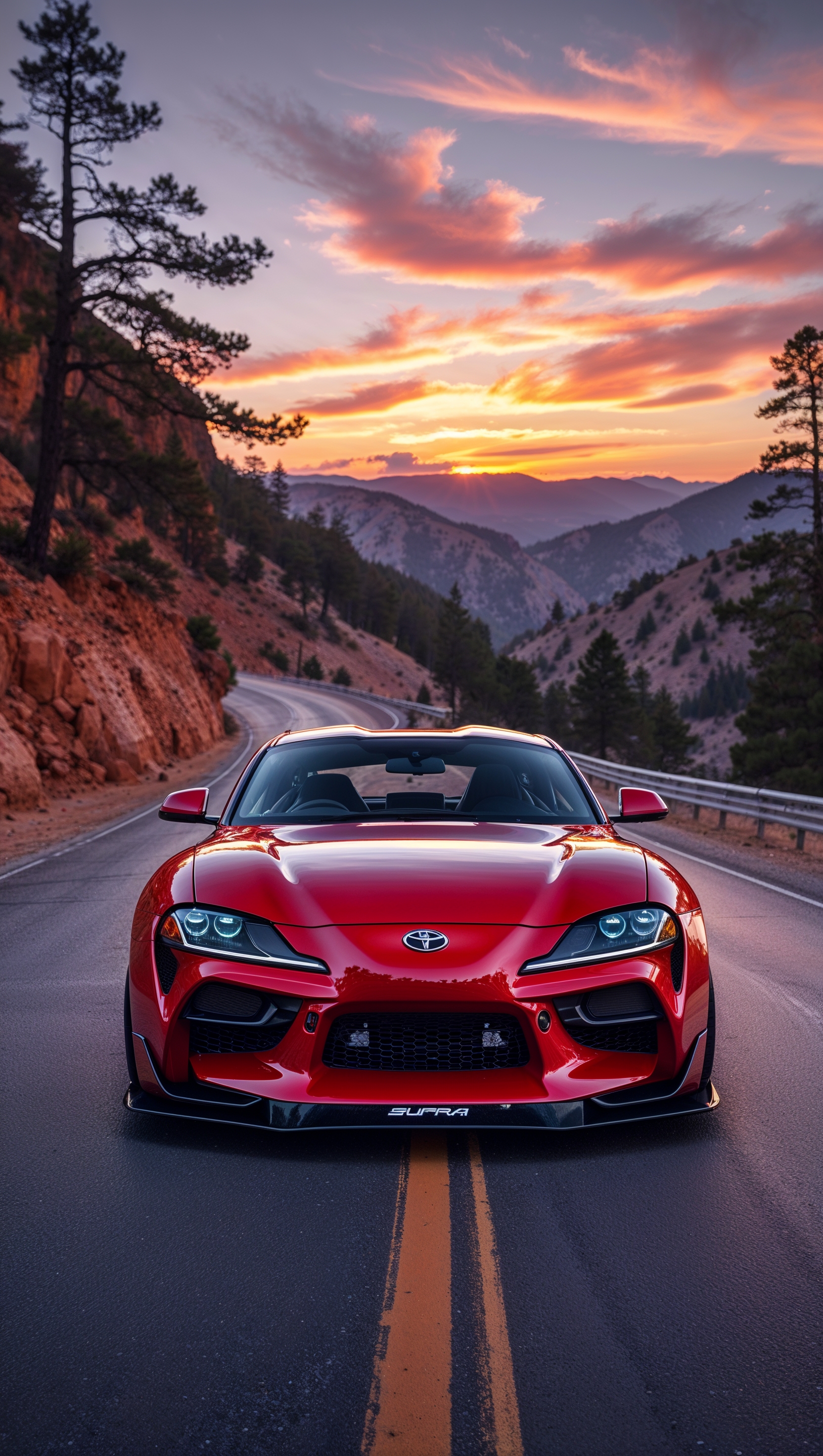 Classic Toyota Supra on a mountain road at sunset, aesthetic wallpaper 1664x2944 Classic Toyota Supra on a mountain road at sunset, aesthetic wallpaper