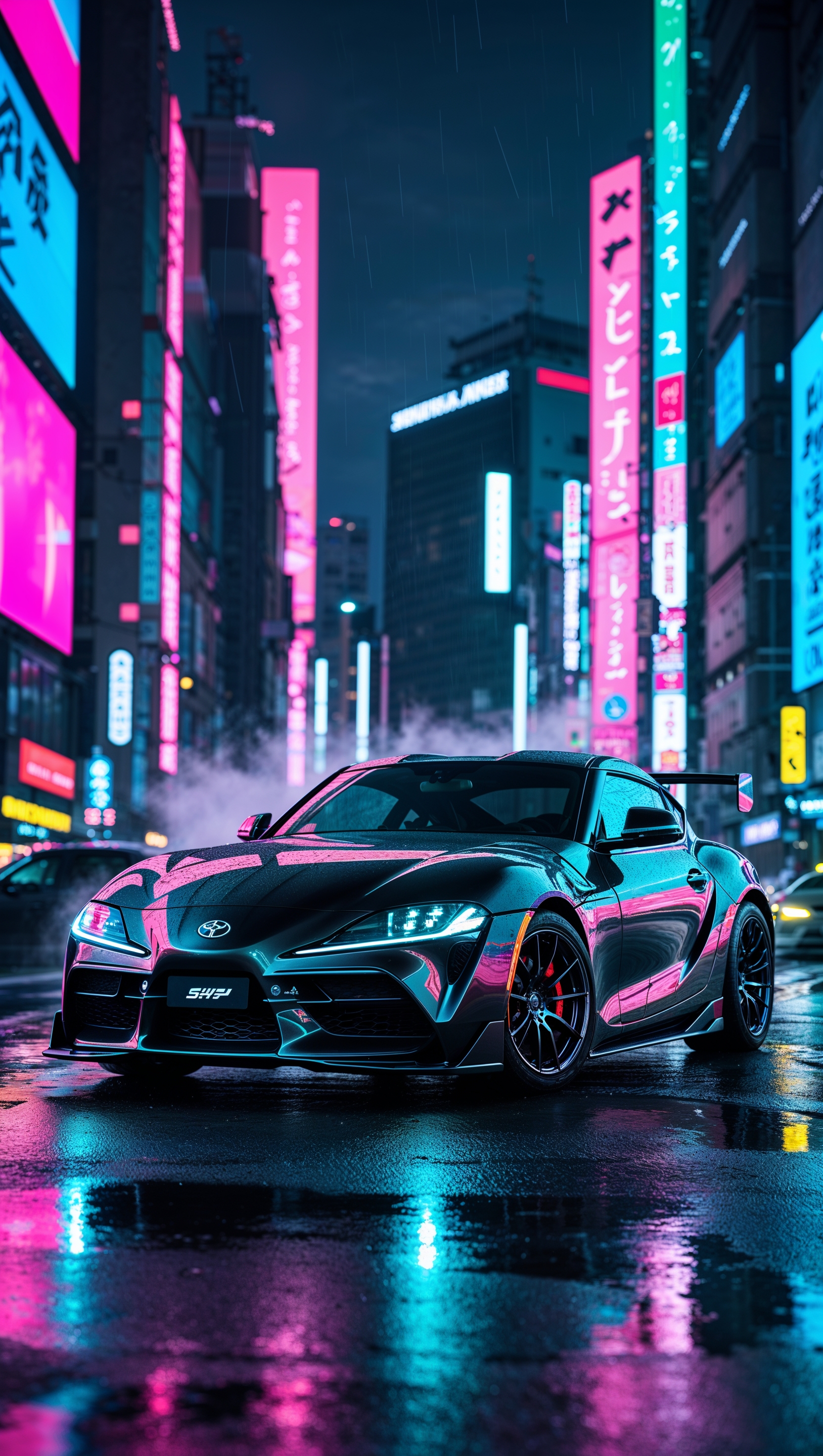 Toyota Supra on a neon-lit Tokyo street at night, ultra HD iPhone wallpaper 1664x2944 Toyota Supra on a neon-lit Tokyo street at night, ultra HD iPhone wallpaper