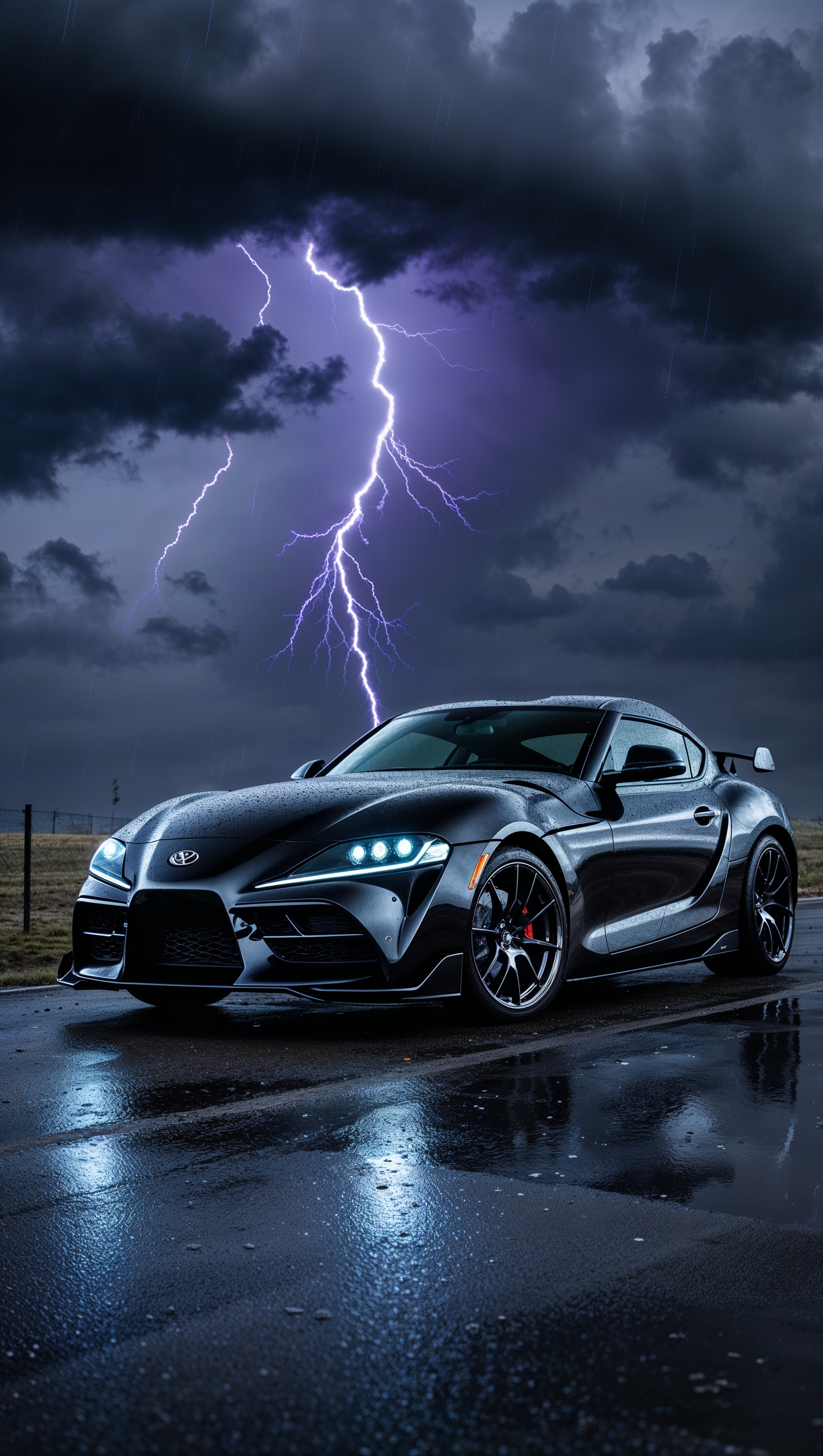 Toyota Supra MK5 with thunderstorm sky, dark aesthetic wallpaper 1664x2944 Toyota Supra MK5 with thunderstorm sky, dark aesthetic wallpaper