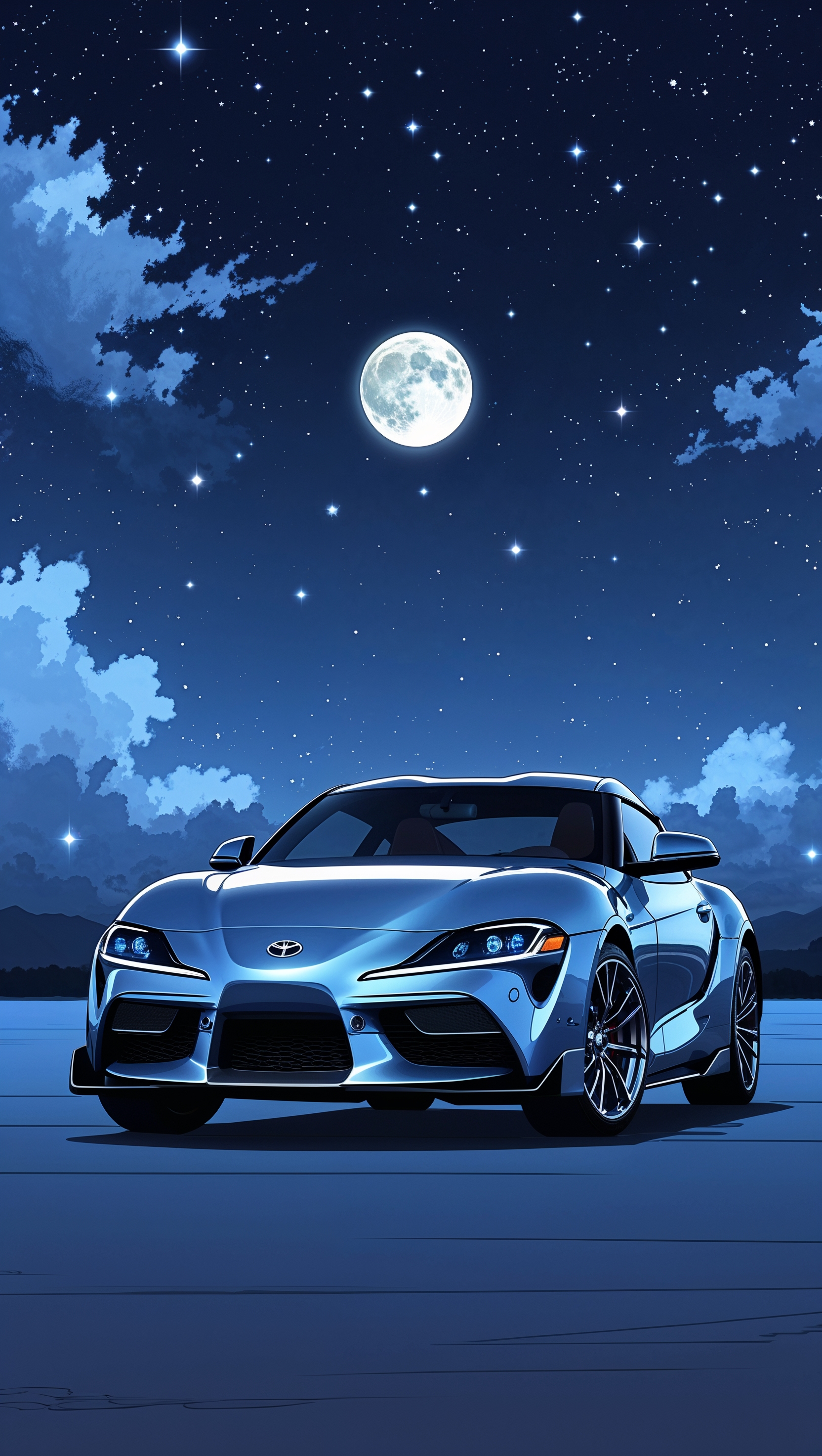 Toyota Supra under starry night sky, minimalist iPhone wallpaper 1664x2944 Toyota Supra under starry night sky, minimalist iPhone wallpaper