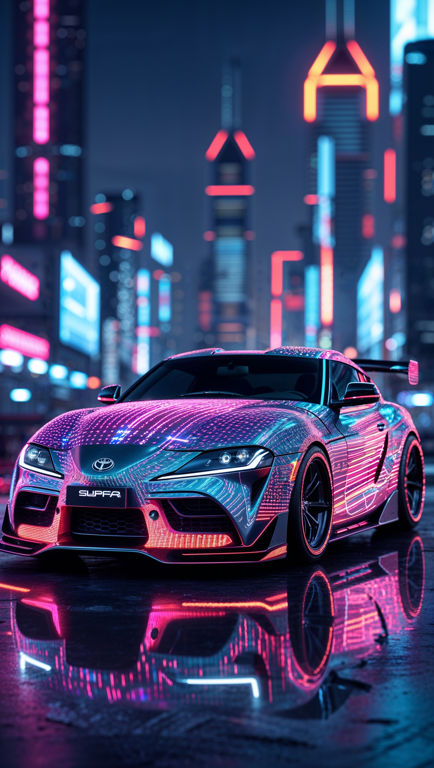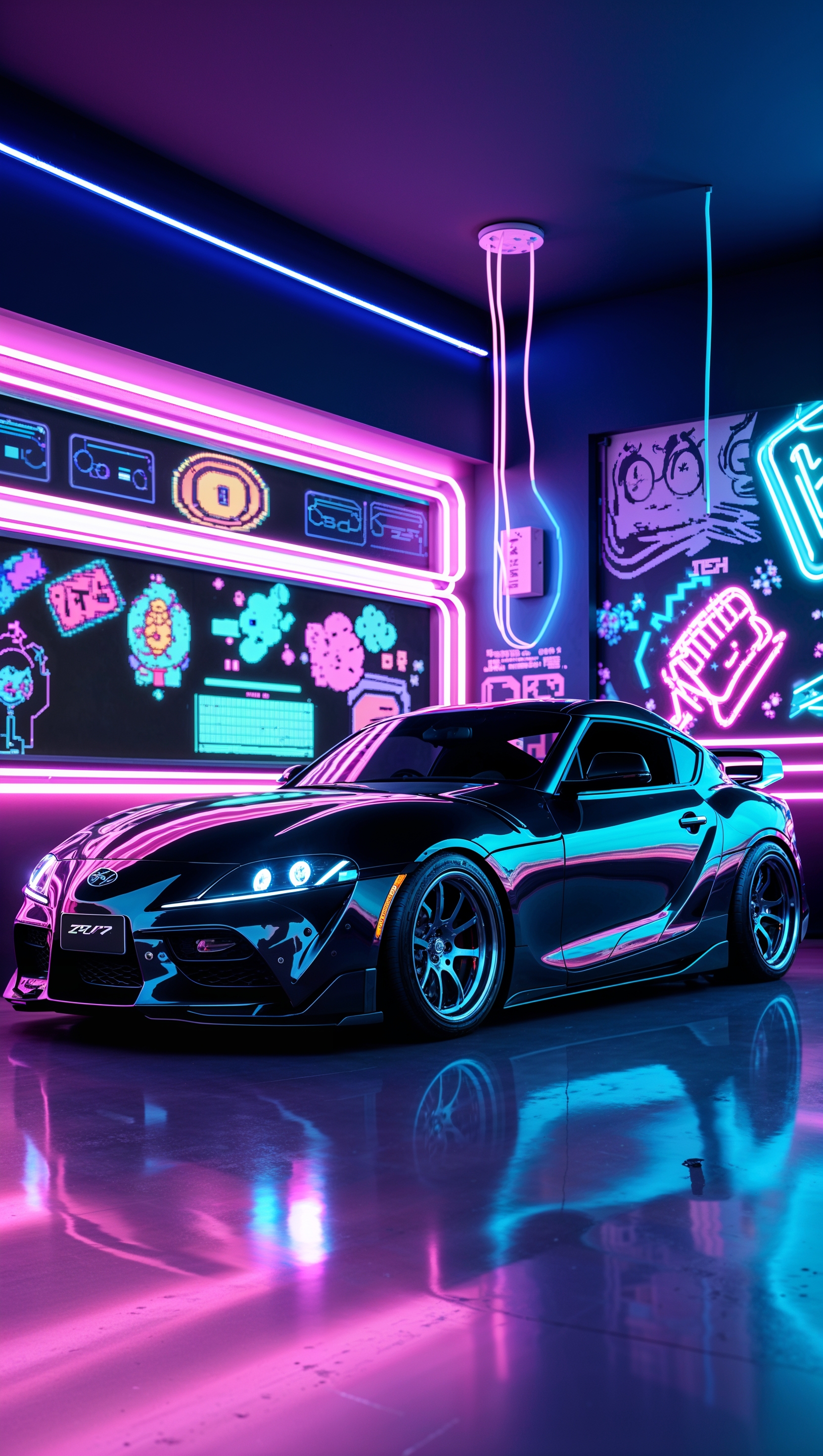 Cyberpunk Toyota Supra design, glowing lights, iPhone background 1664x2944 Cyberpunk Toyota Supra design, glowing lights, iPhone background