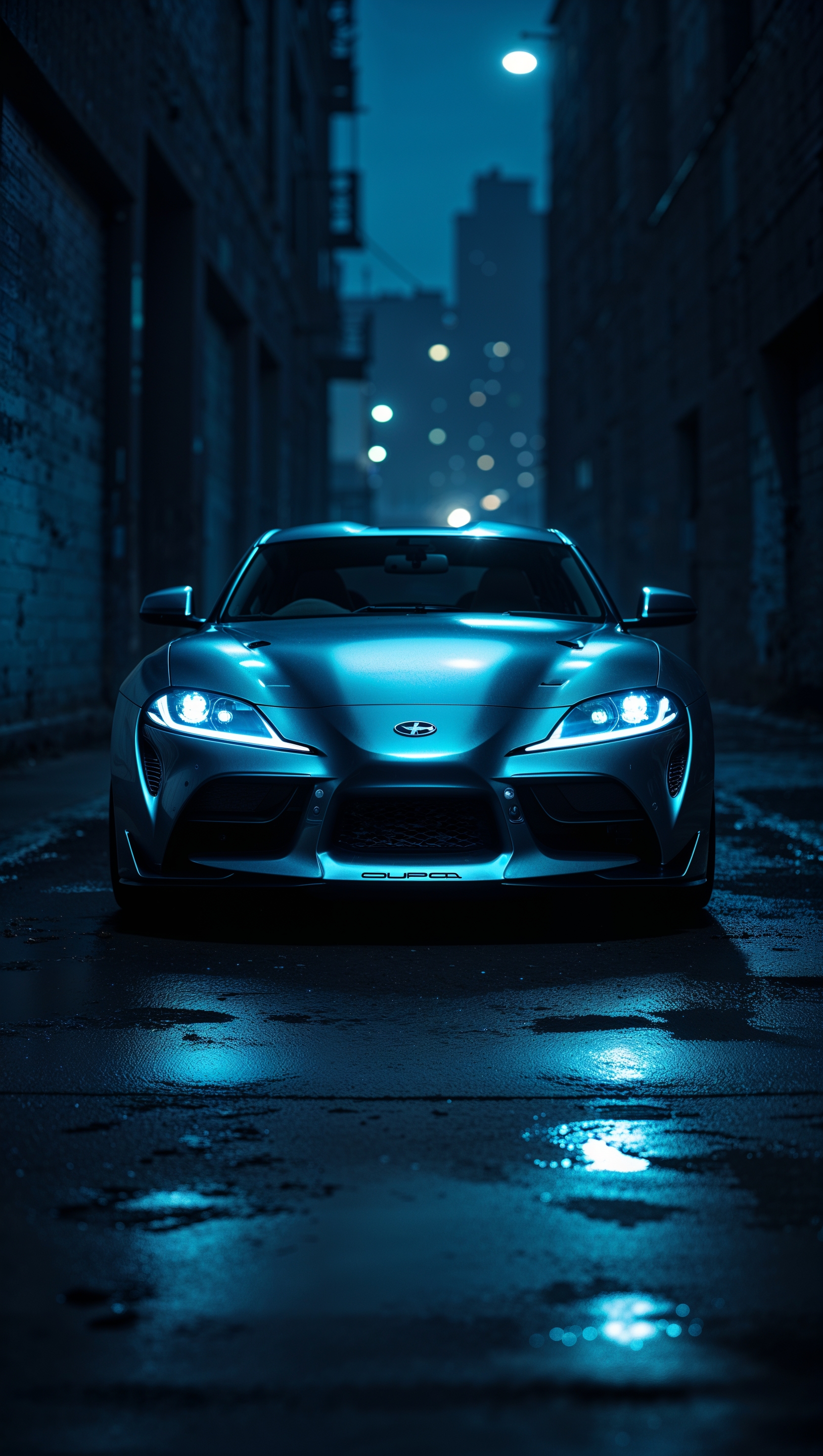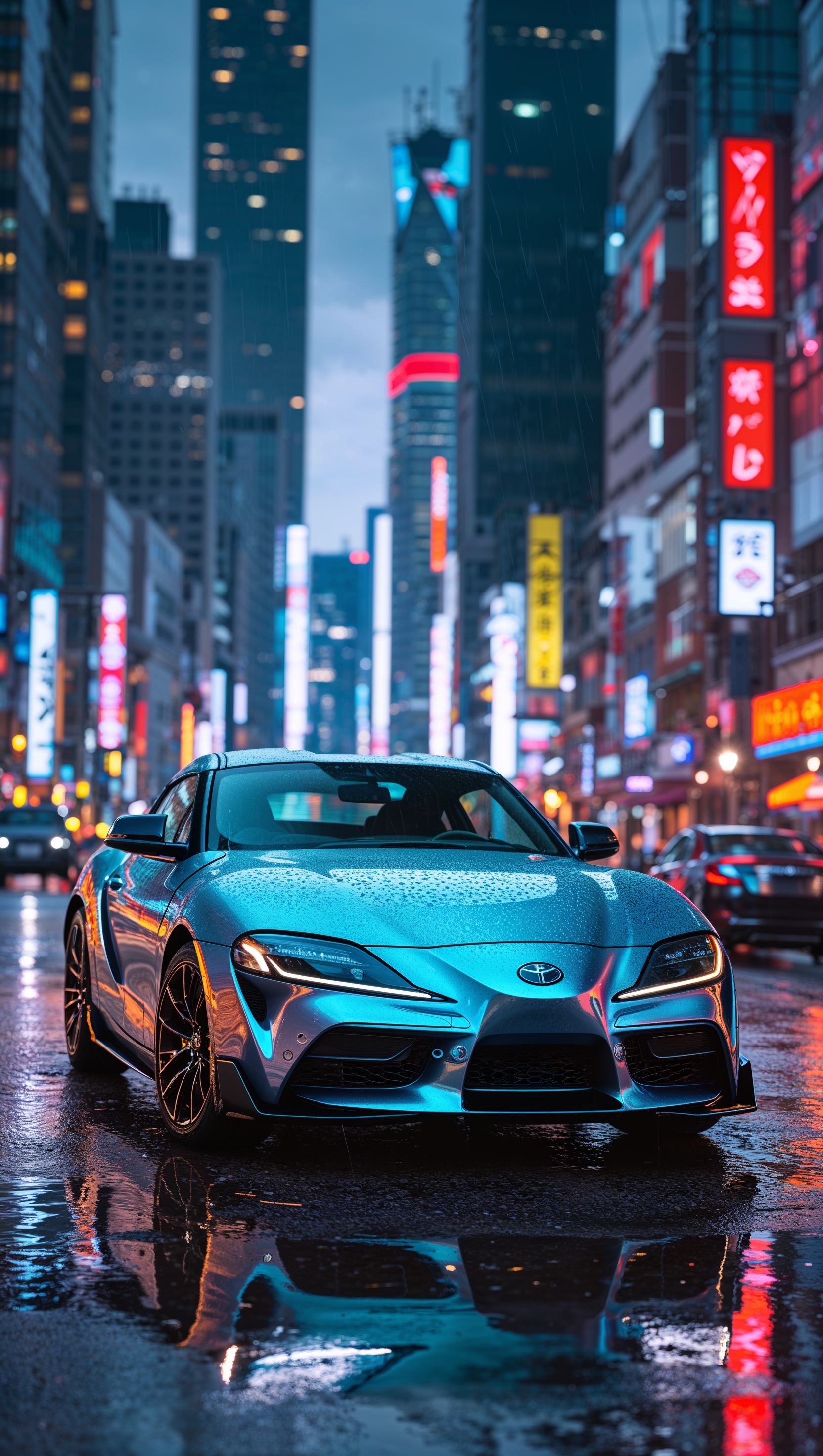 Toyota Supra on wet asphalt with city lights reflections 1664x2944 Toyota Supra on wet asphalt with city lights reflections