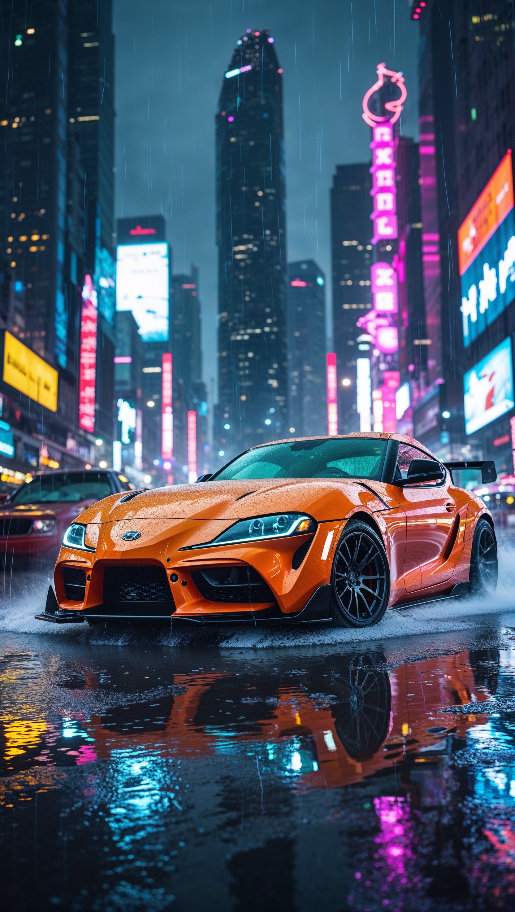 Supra drifting through rainy streets, neon reflections everywhere 1664x2944 Supra drifting through rainy streets, neon reflections everywhere