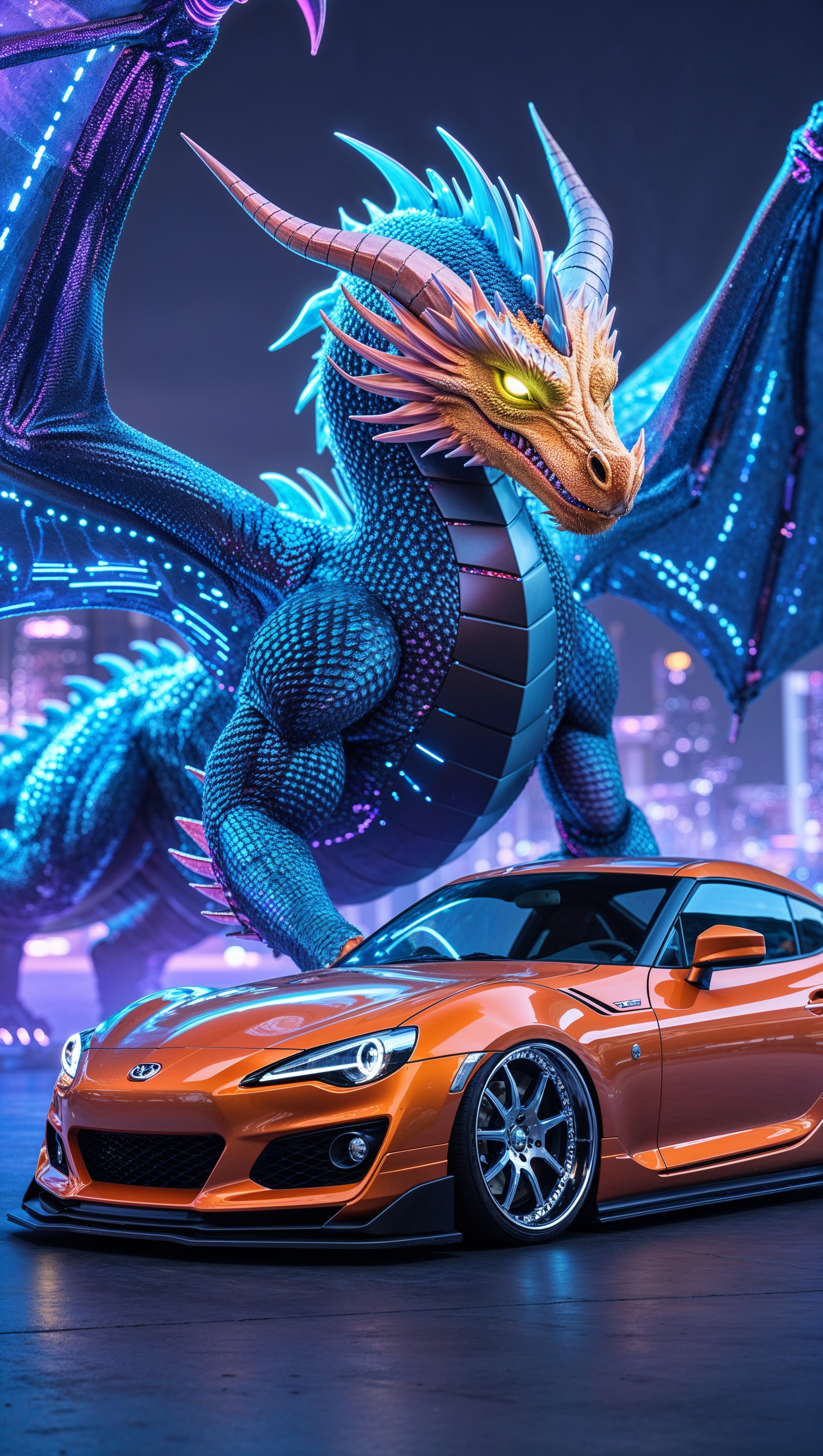 Supra beside a cyber dragon, fantasy-meets-auto wallpaper 1664x2944 Supra beside a cyber dragon, fantasy-meets-auto wallpaper