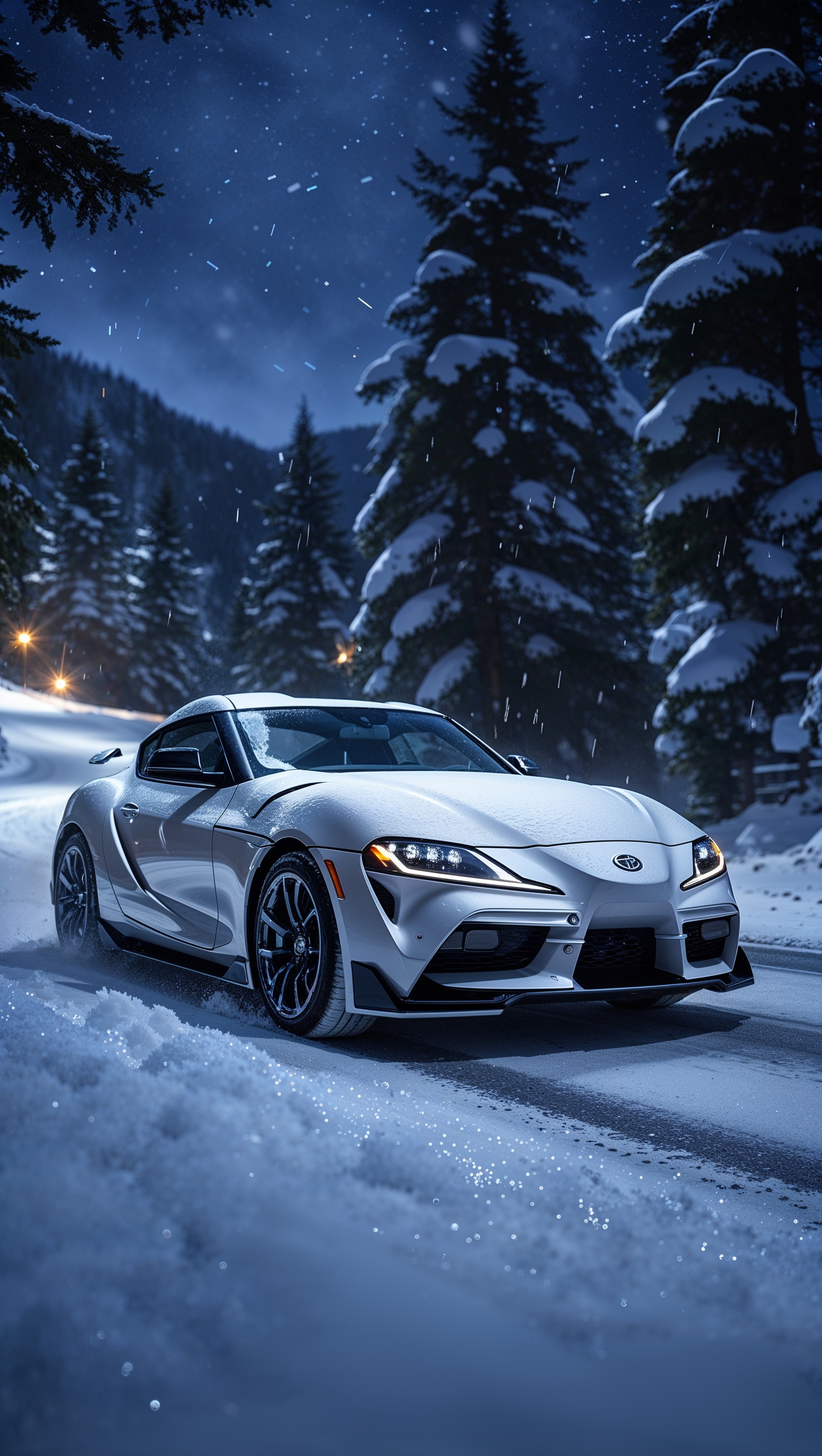 Toyota Supra driving through snowfall at night, winter vibes 1664x2944 Toyota Supra driving through snowfall at night, winter vibes