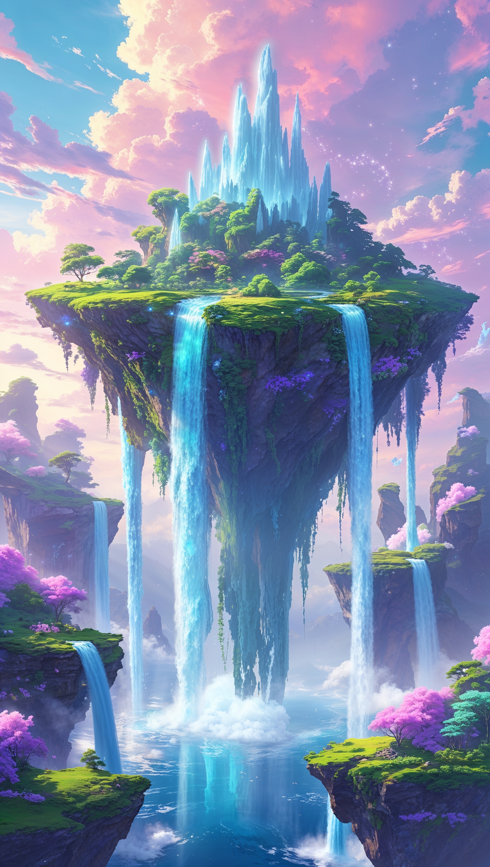 Floating island with waterfalls in the sky, high fantasy, 40k iPhone wallpaper 1664x2944 Floating island with waterfalls in the sky, high fantasy, 40k iPhone wallpaper