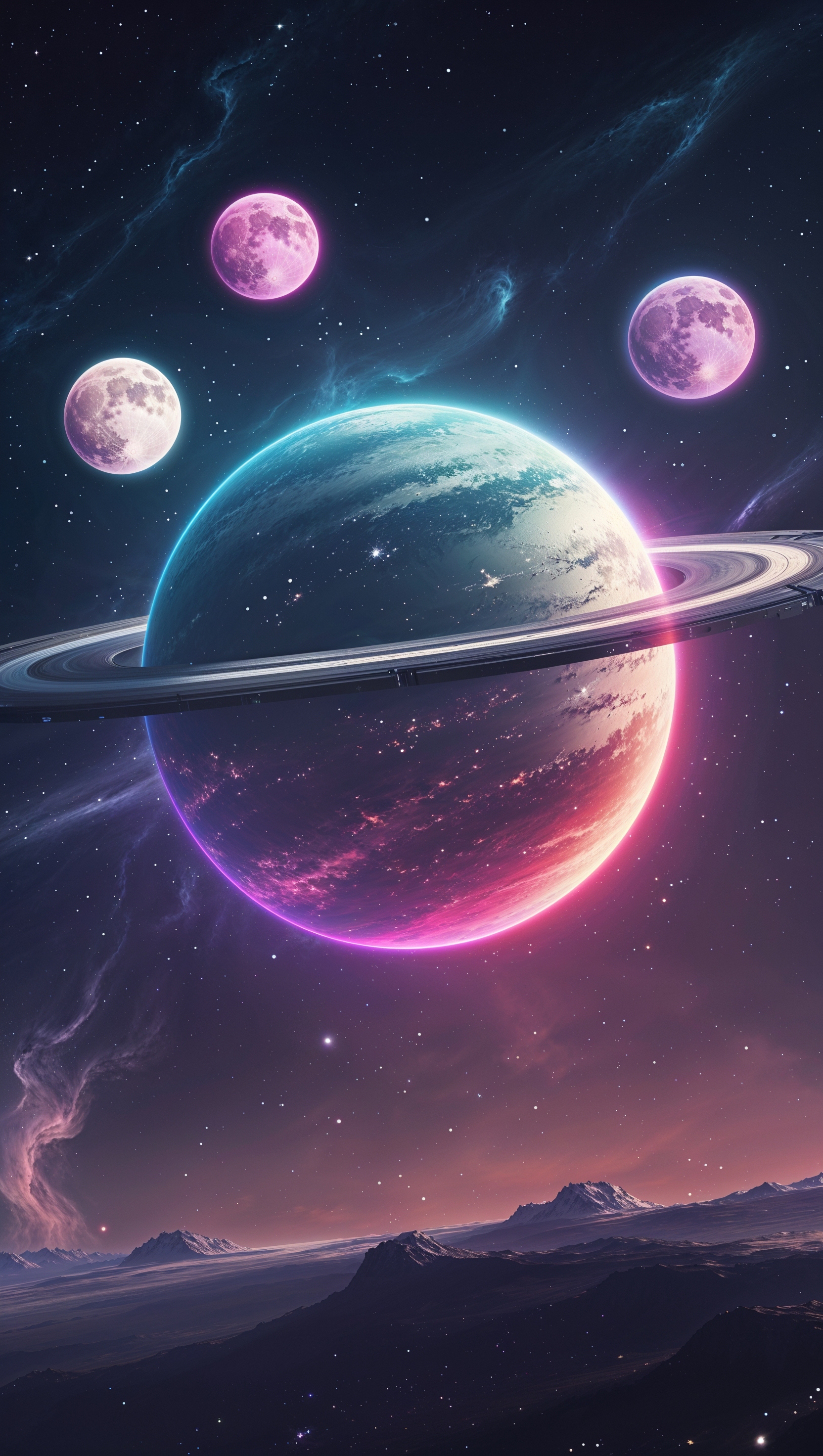 A distant planet with glowing moons in a dark cosmic background, 40k iPhone wallpaper 1664x2944 A distant planet with glowing moons in a dark cosmic background, 40k iPhone wallpaper