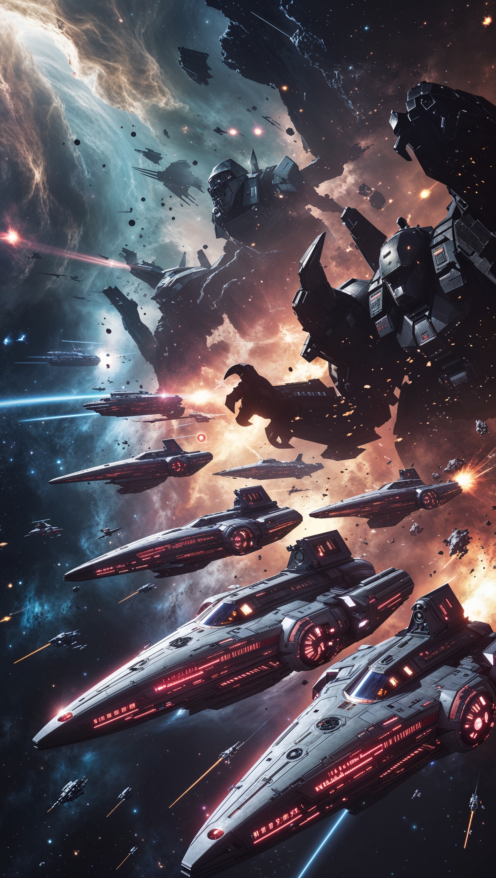 Epic space battle between starships in deep space, 40k resolution for iPhone wallpaper 1664x2944 Epic space battle between starships in deep space, 40k resolution for iPhone wallpaper