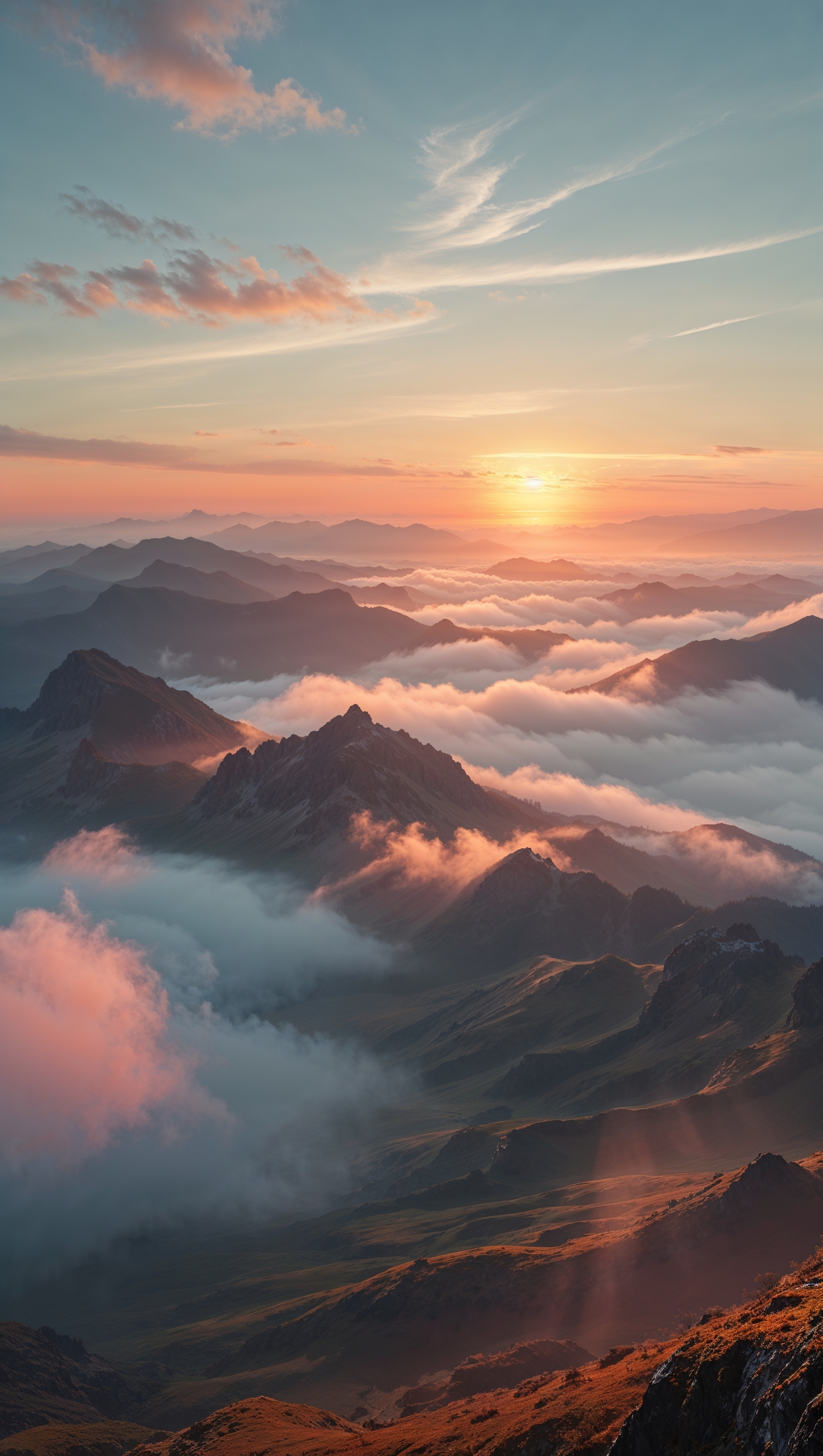 Sunset over misty mountains, golden tones, ultra-high-resolution iPhone wallpaper 1664x2944 Sunset over misty mountains, golden tones, ultra-high-resolution iPhone wallpaper