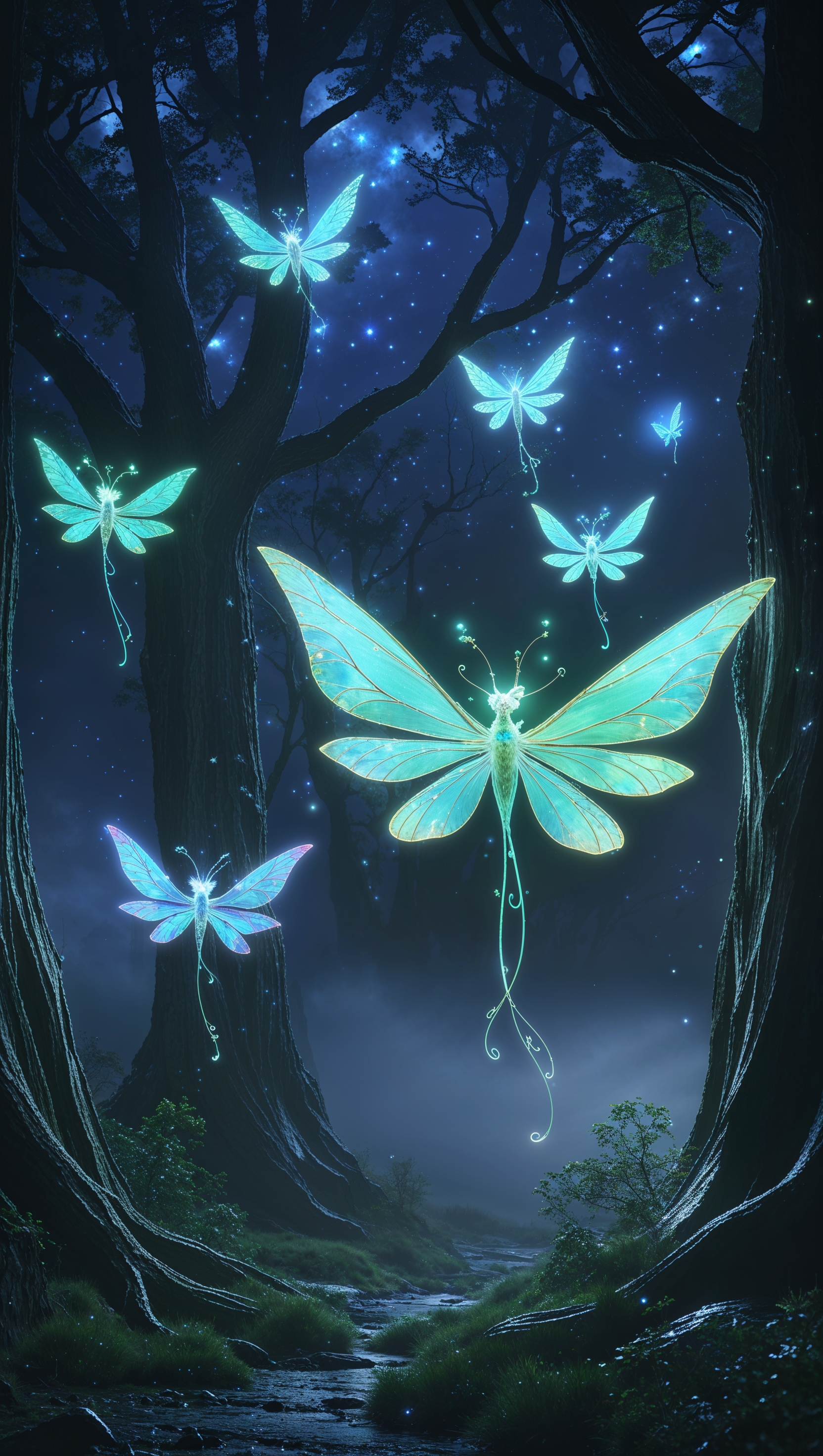 Glowing creatures in a night forest, fantasy magical vibe, 40k resolution 1664x2944 Glowing creatures in a night forest, fantasy magical vibe, 40k resolution