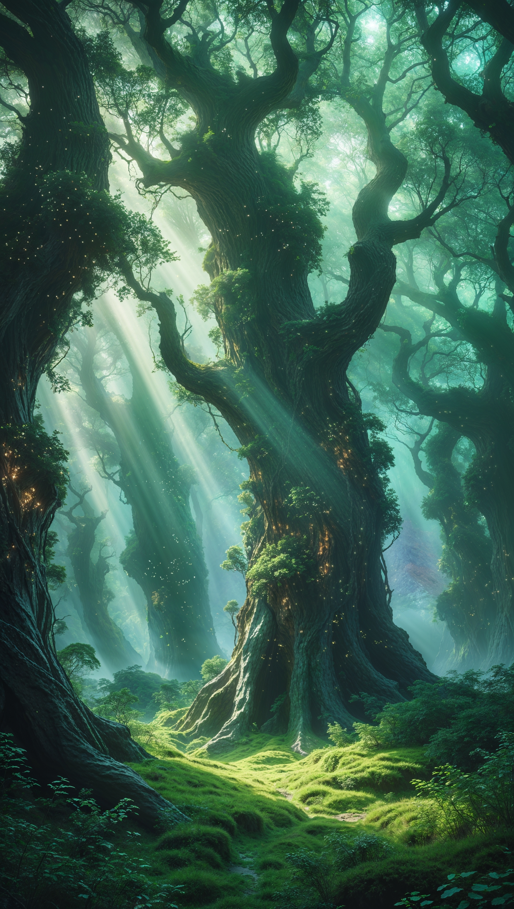 Enchanted forest with magical light beams through the trees, 40k fantasy wallpaper 1664x2944 Enchanted forest with magical light beams through the trees, 40k fantasy wallpaper