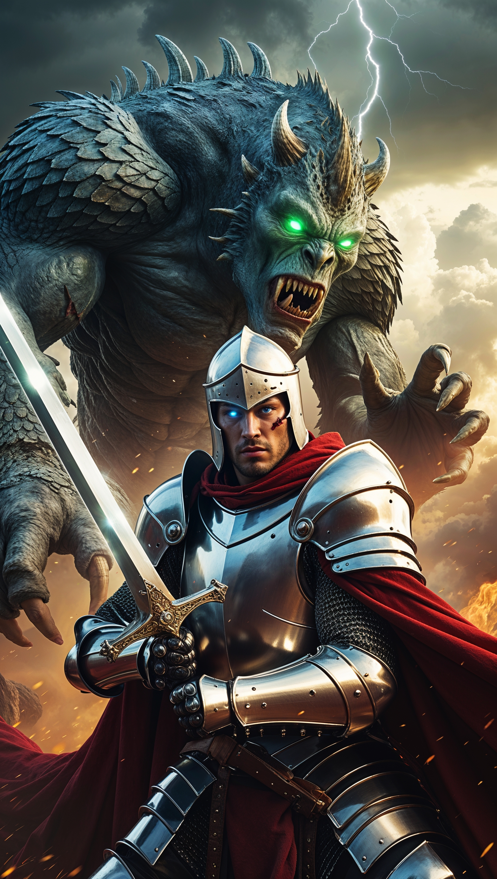 A knight fighting a giant monster, dramatic fantasy scene, 40k iPhone wallpaper 1664x2944 A knight fighting a giant monster, dramatic fantasy scene, 40k iPhone wallpaper