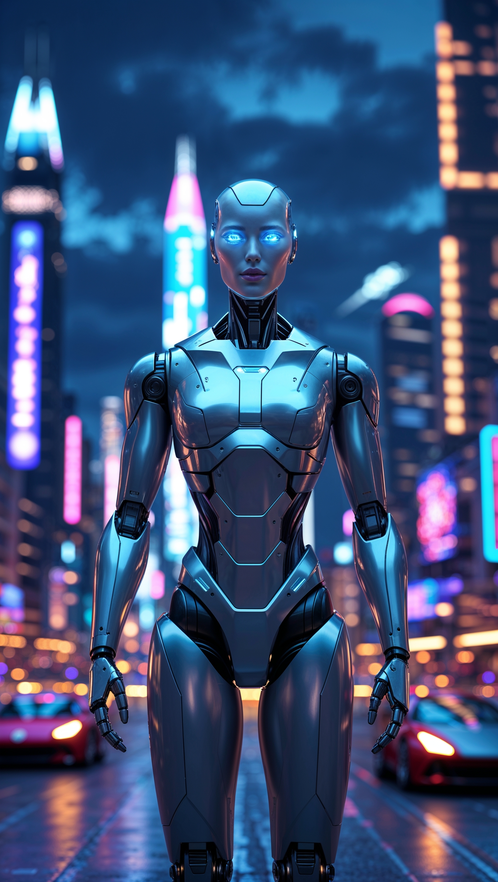 Humanoid robot in a futuristic cityscape, ultra-resolution (40k) iPhone background 1664x2944 Humanoid robot in a futuristic cityscape, ultra-resolution (40k) iPhone background