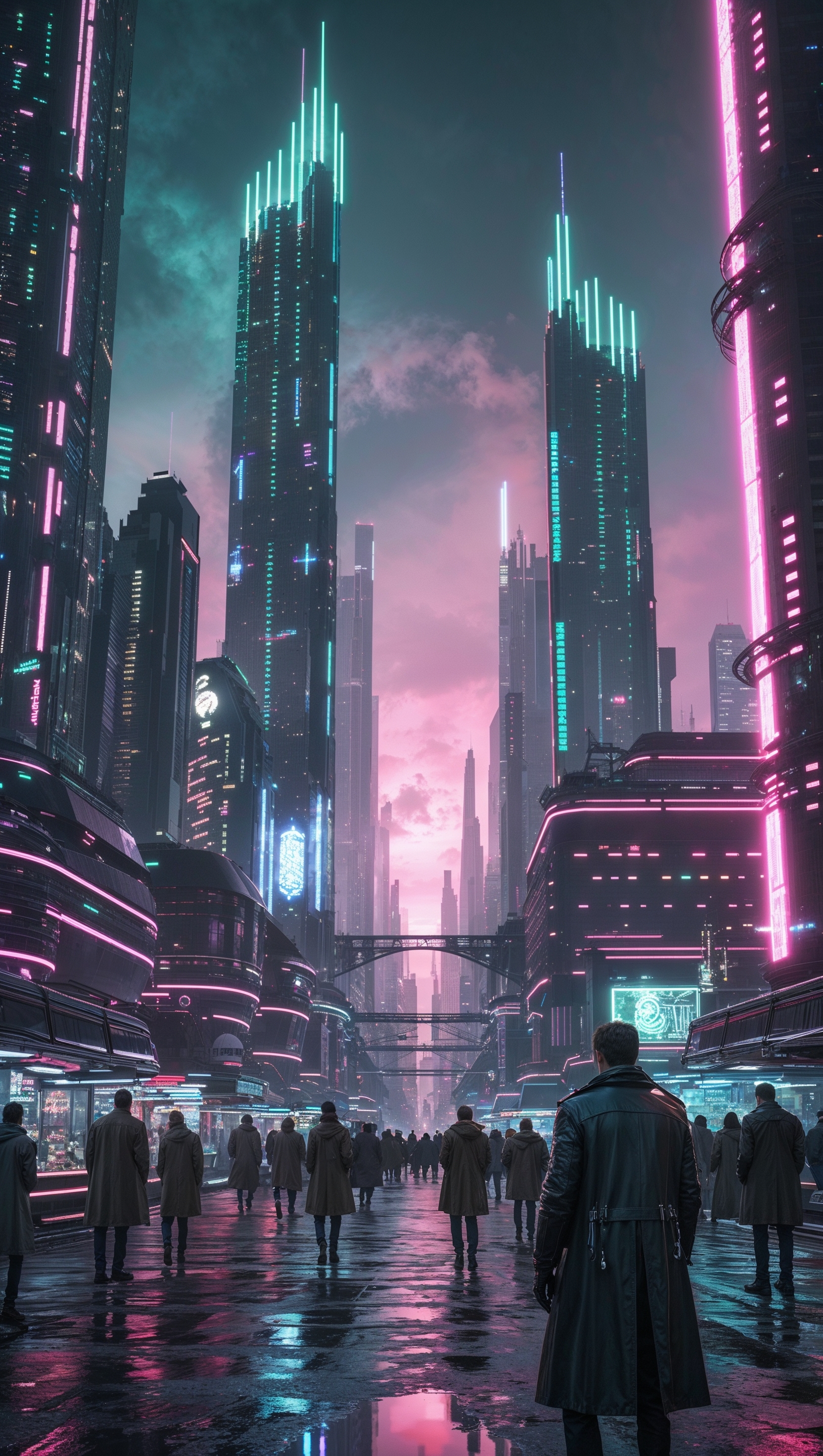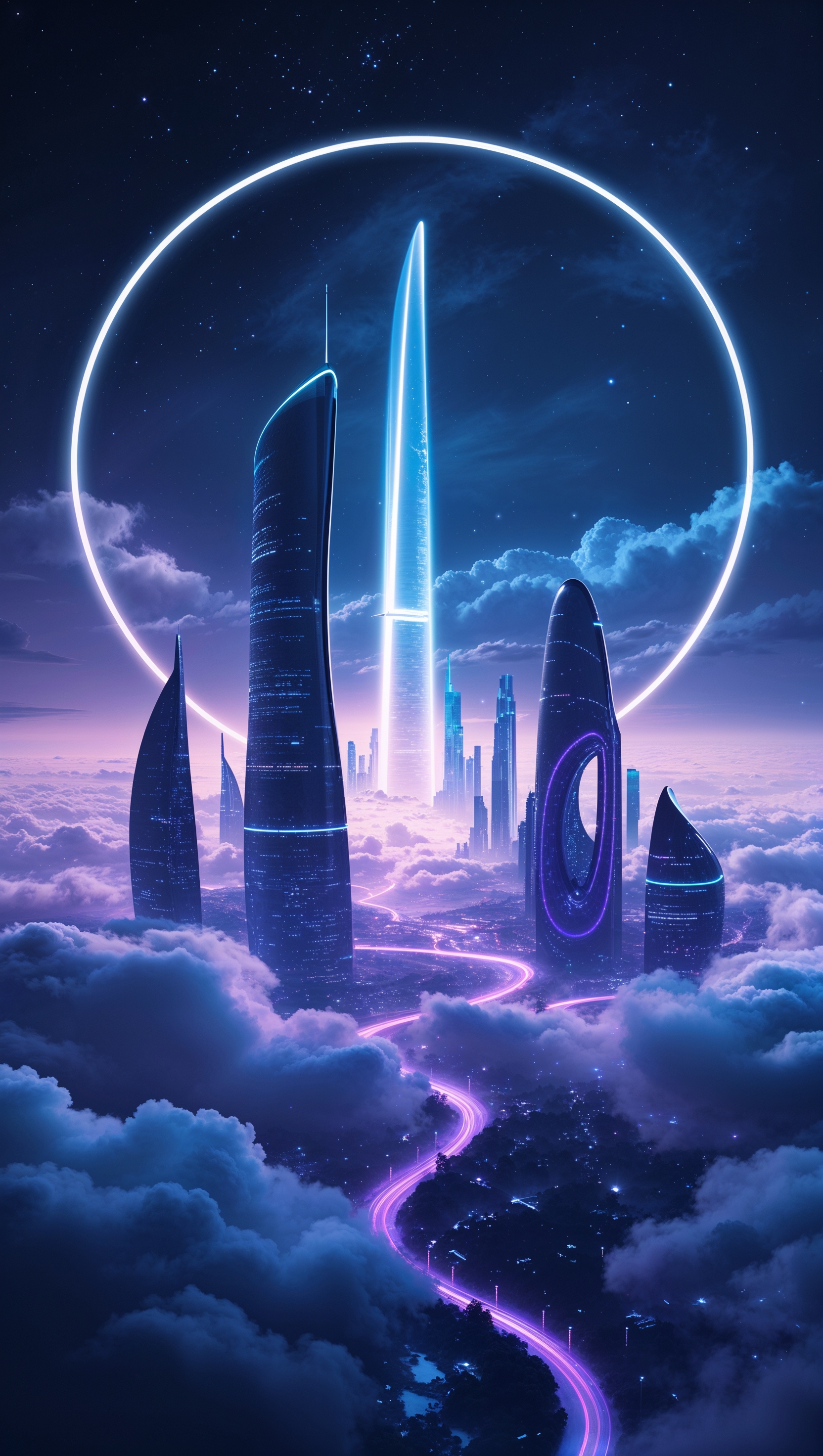 Futuristic city with glowing skyscrapers, cyberpunk style, 40k wallpaper 1664x2944 Futuristic city with glowing skyscrapers, cyberpunk style, 40k wallpaper