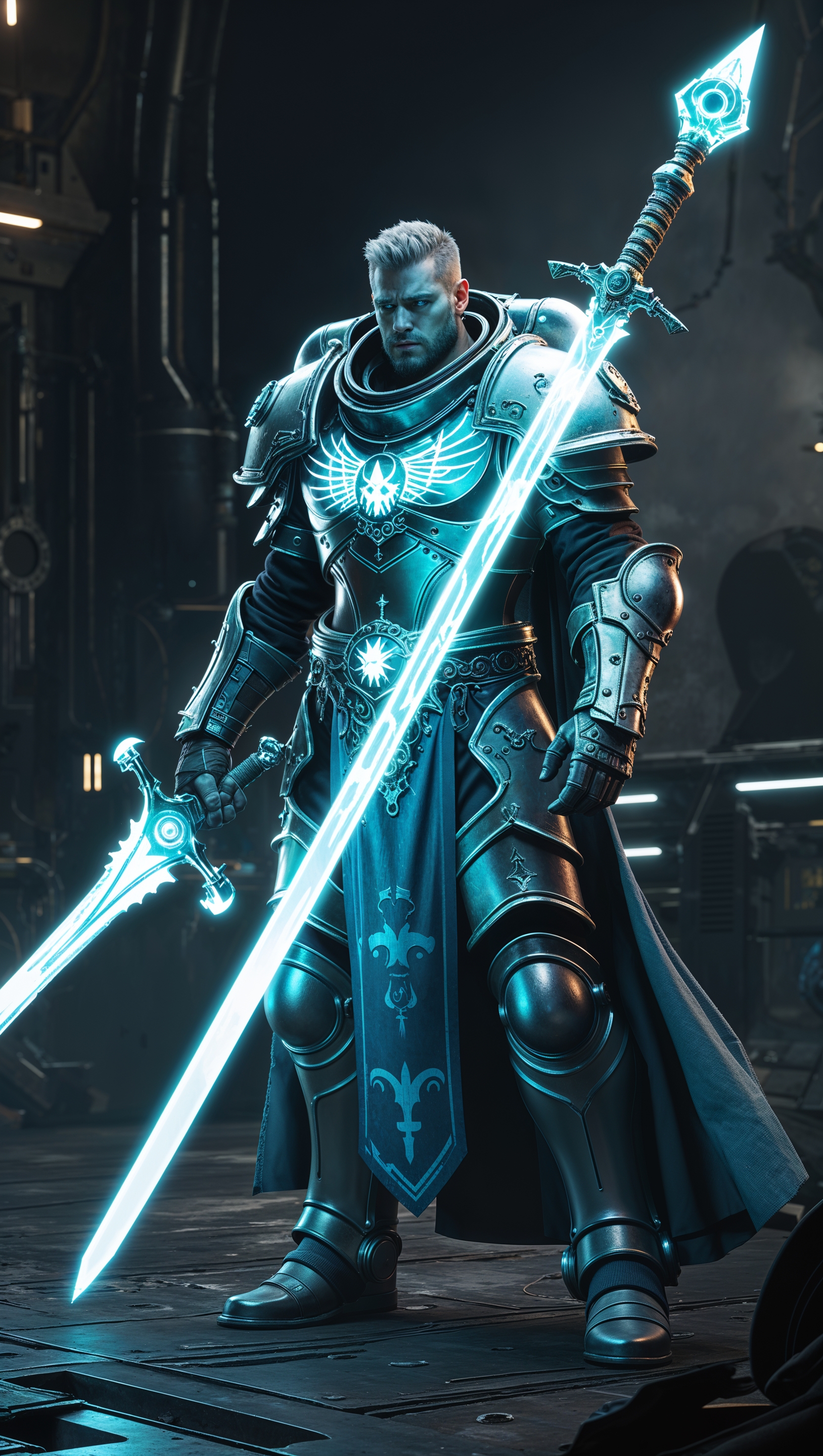 Warrior in glowing armor with a light sword, game-style 40k iPhone wallpaper 1664x2944 Warrior in glowing armor with a light sword, game-style 40k iPhone wallpaper