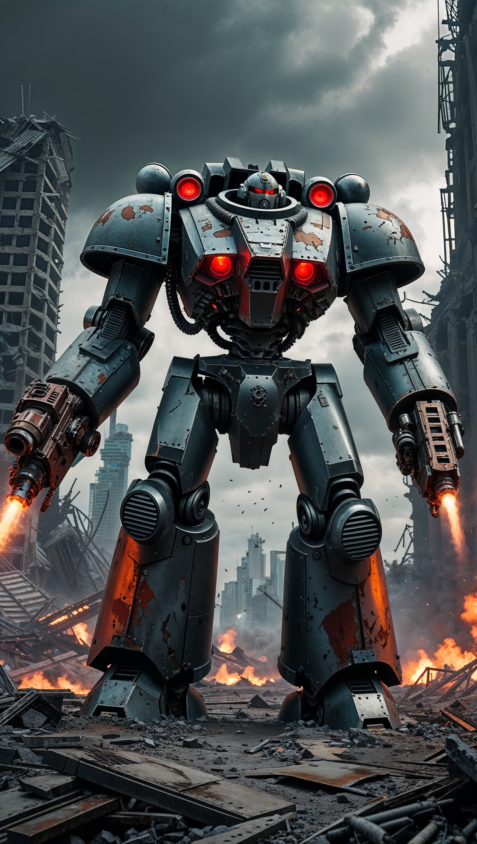 Battle robot ready for war in a post-apocalyptic world, 40k iPhone wallpaper 1664x2944 Battle robot ready for war in a post-apocalyptic world, 40k iPhone wallpaper
