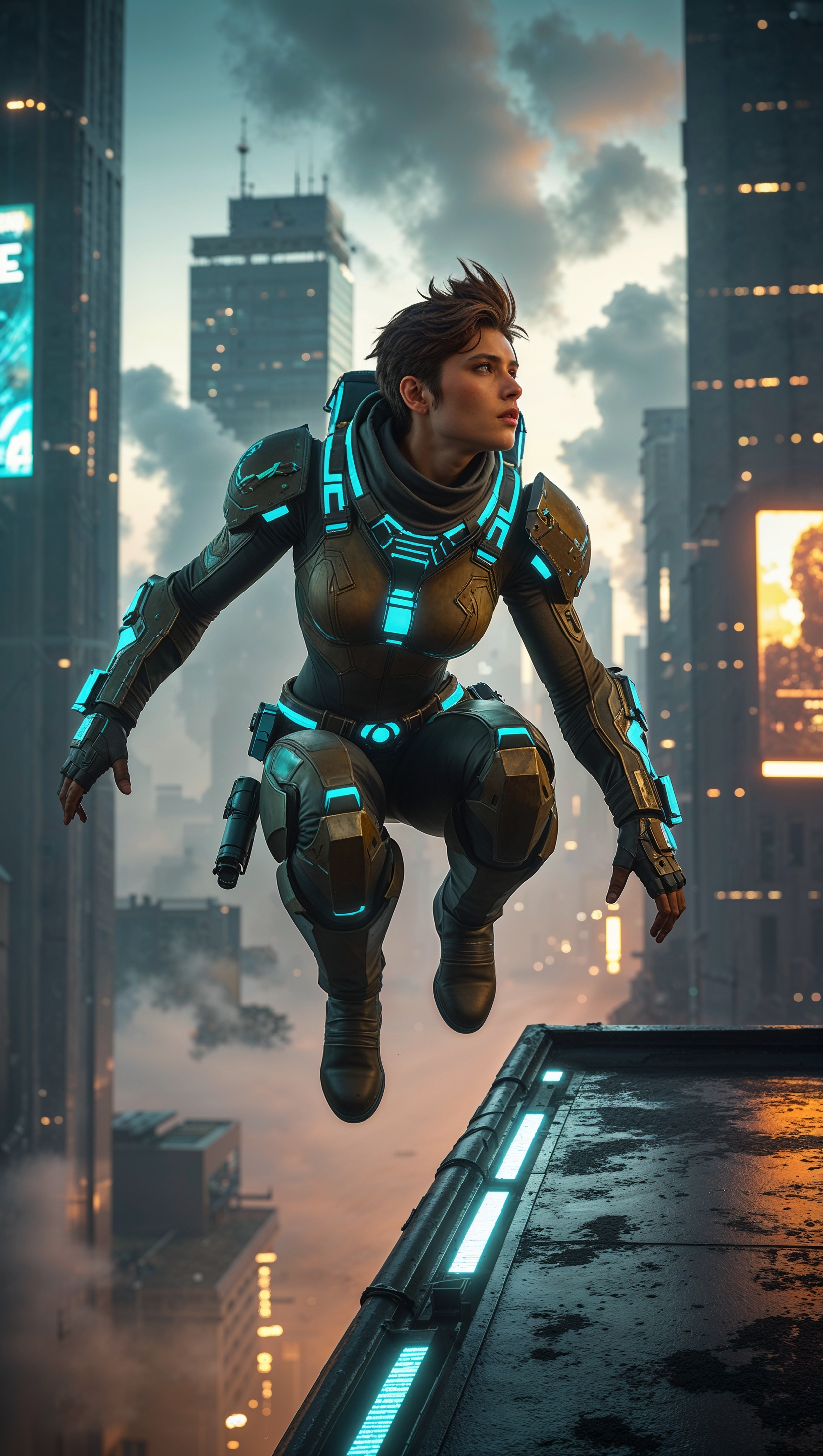 Game hero jumping off a building in a futuristic city, cinematic 40k iPhone wallpaper 1664x2944 Game hero jumping off a building in a futuristic city, cinematic 40k iPhone wallpaper