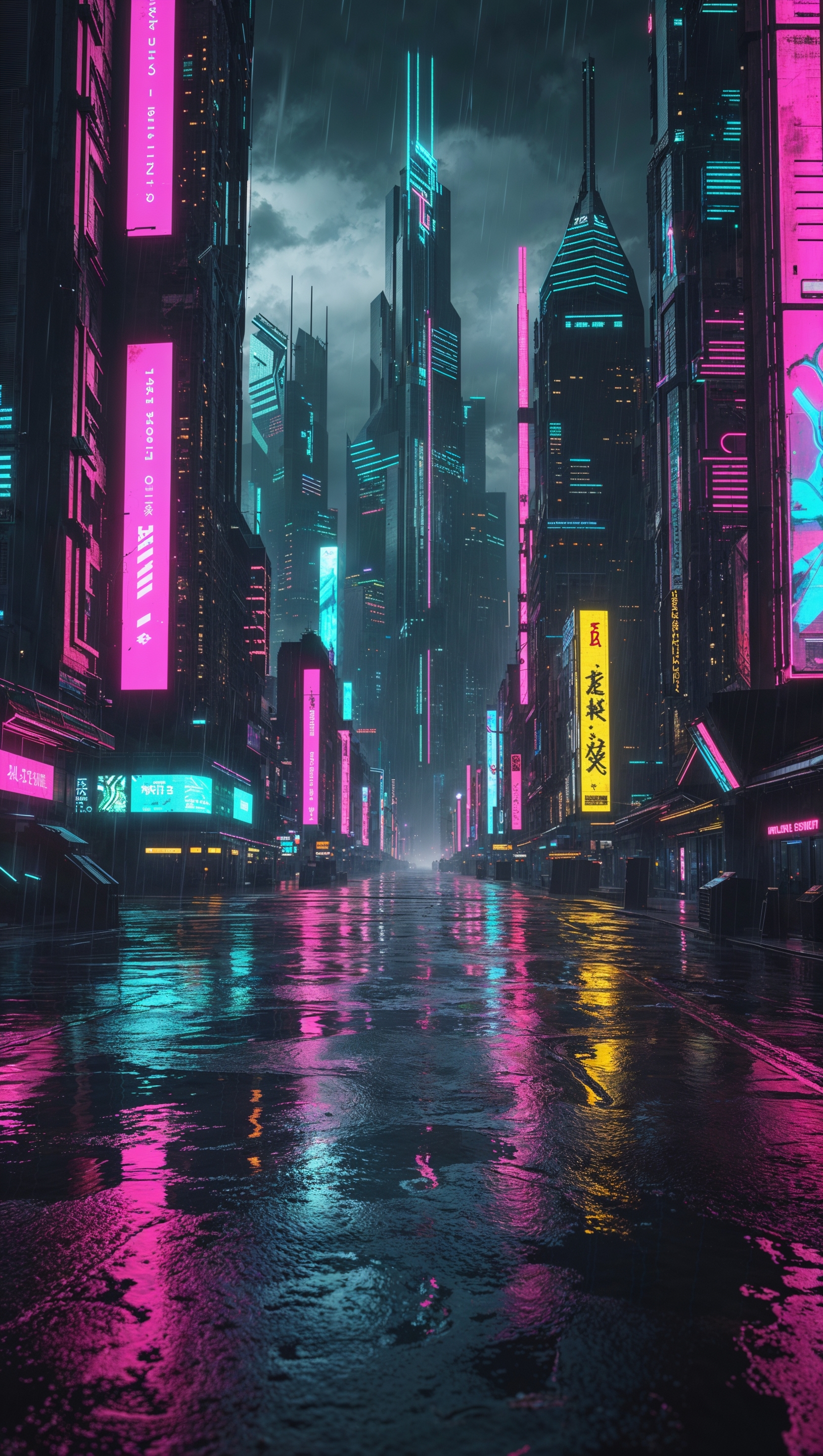 Cyberpunk street with neon lights and rain, high detail 40k iPhone wallpaper 1664x2944 Cyberpunk street with neon lights and rain, high detail 40k iPhone wallpaper