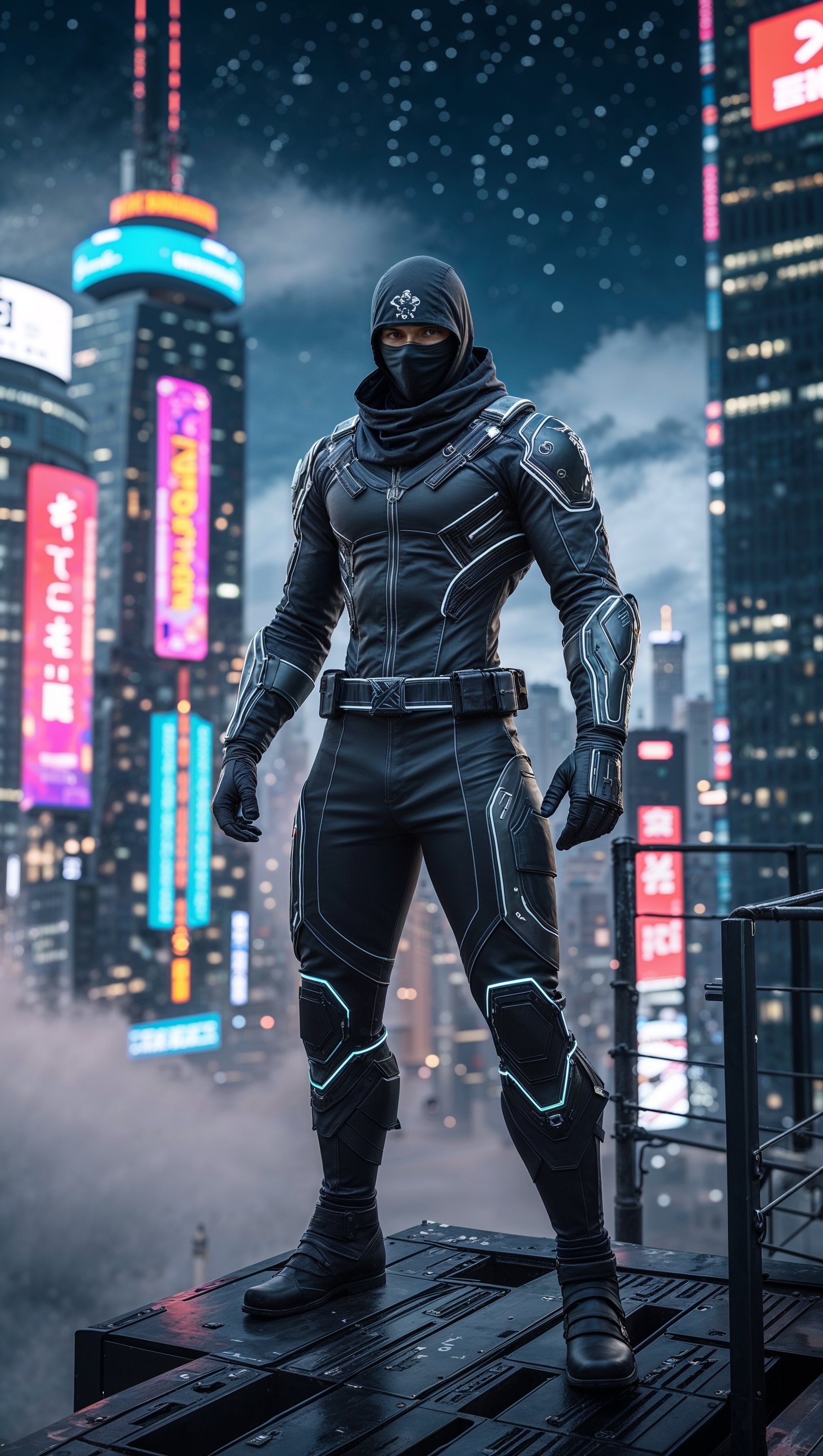 Futuristic ninja in the night with colorful lights, 40k resolution wallpaper 1664x2944 Futuristic ninja in the night with colorful lights, 40k resolution wallpaper