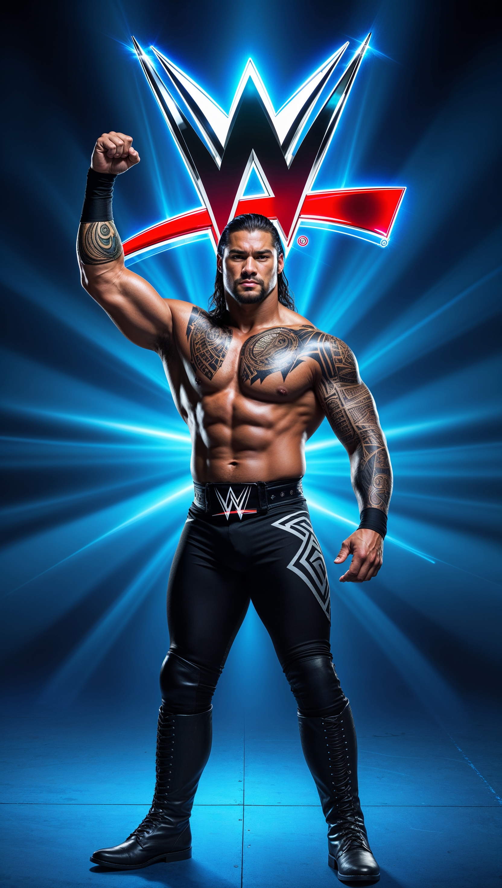 1664x2944 Roman Reigns with the WWE logo and glowing lights
