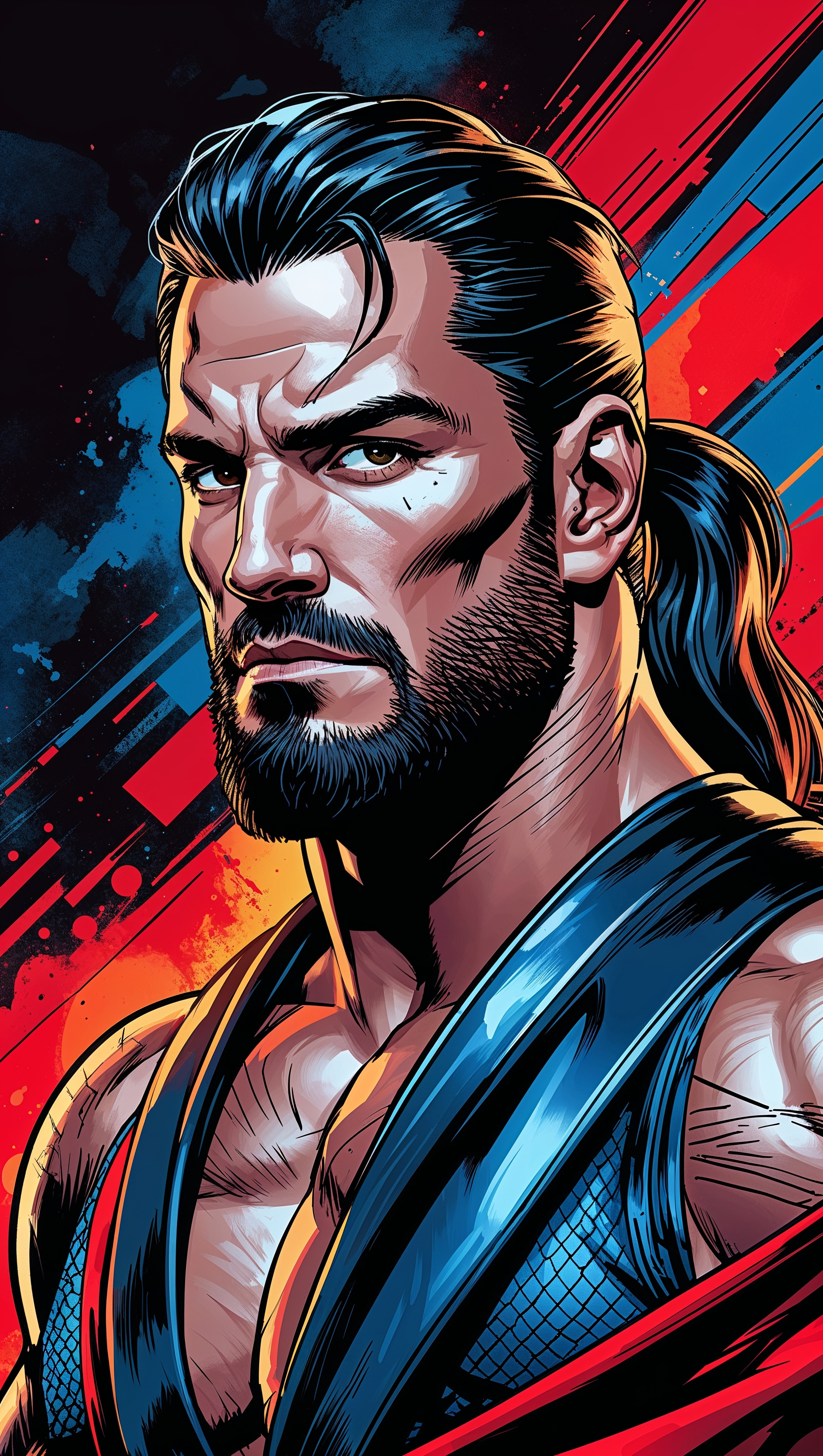1664x2944 Roman Reigns in comic book style with vibrant colors
