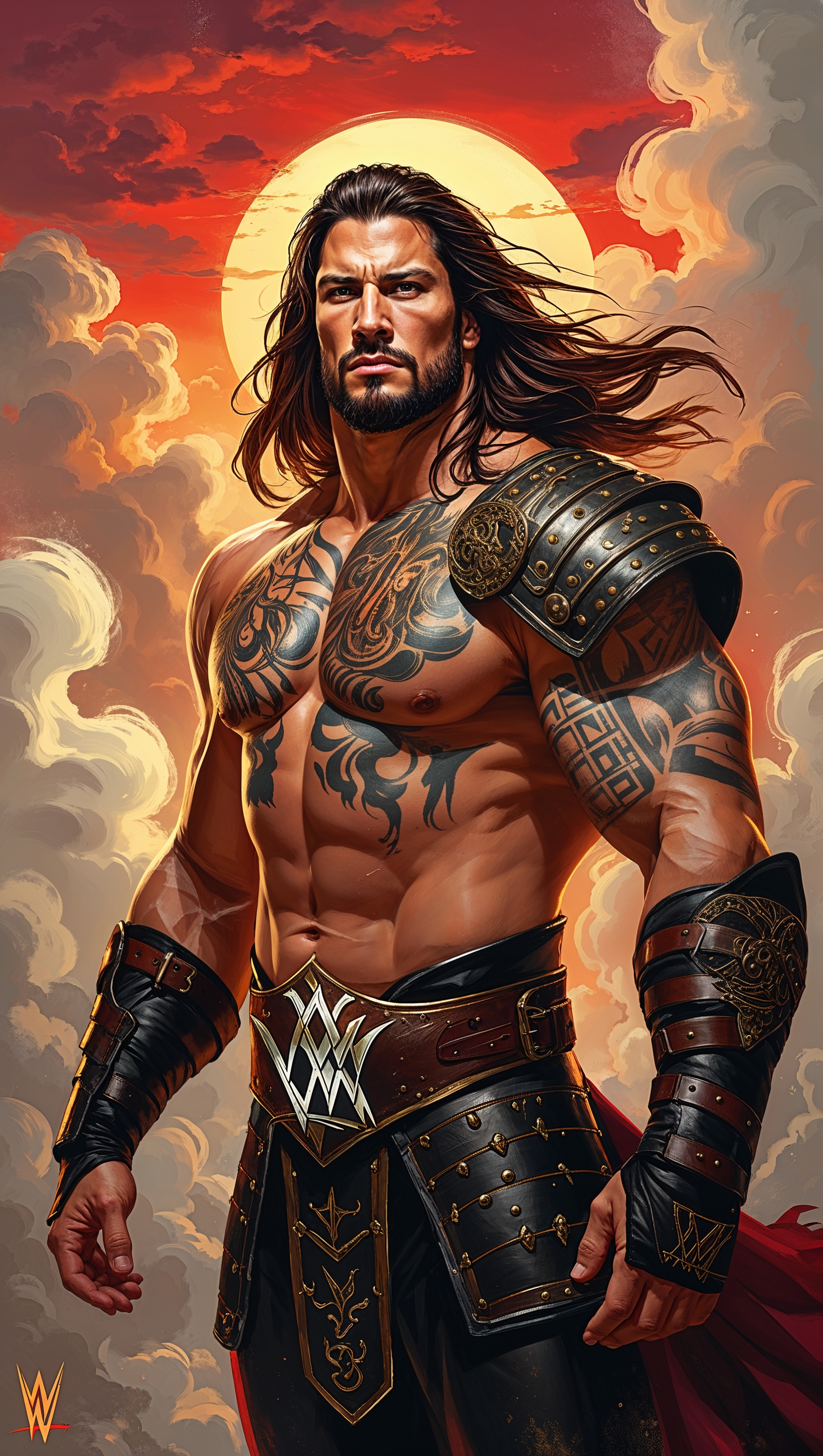1664x2944 Roman Reigns as an ancient warrior in a modern graphic style