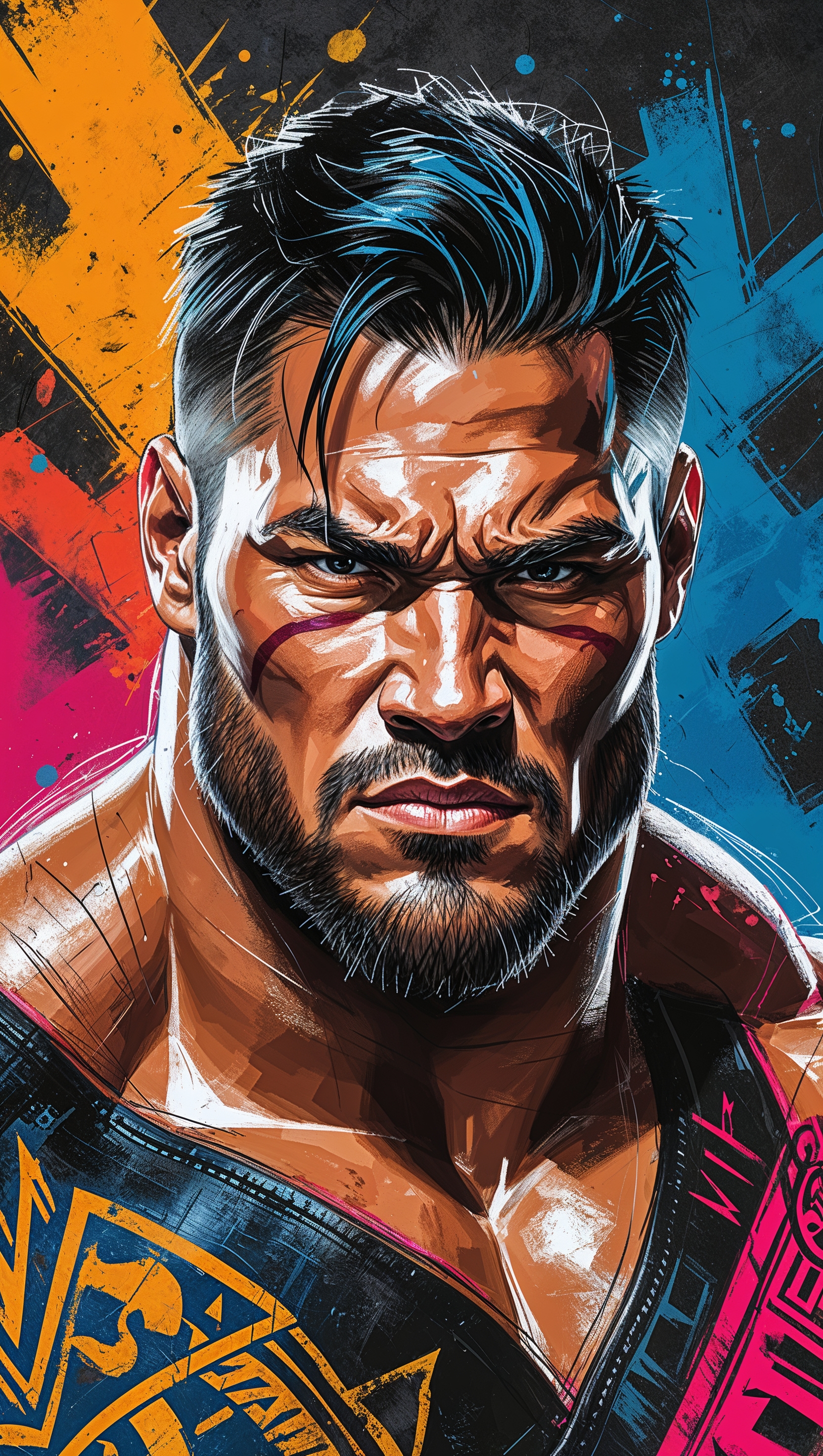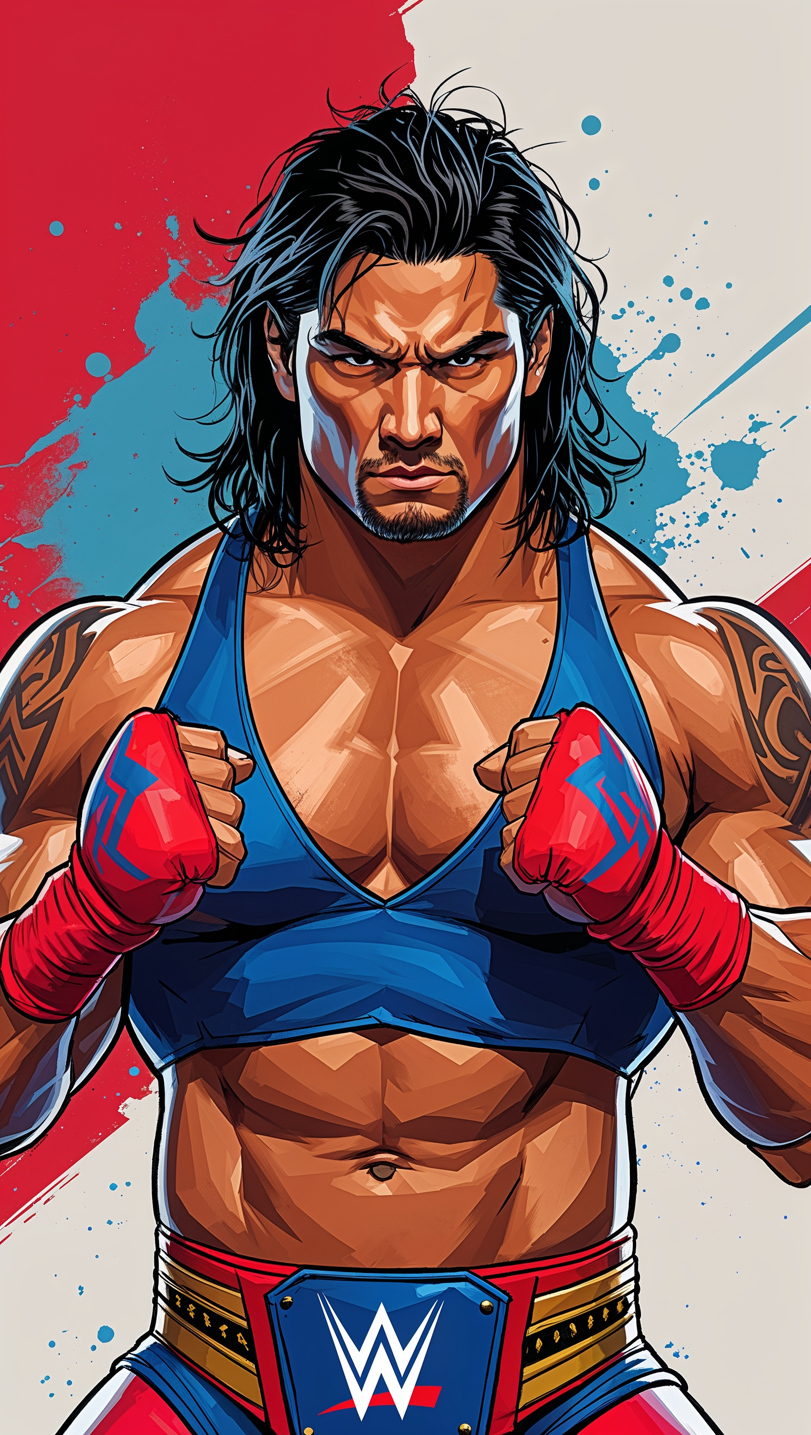 1664x2944 Cartoon-style artwork of Roman Reigns in a fighting pose
