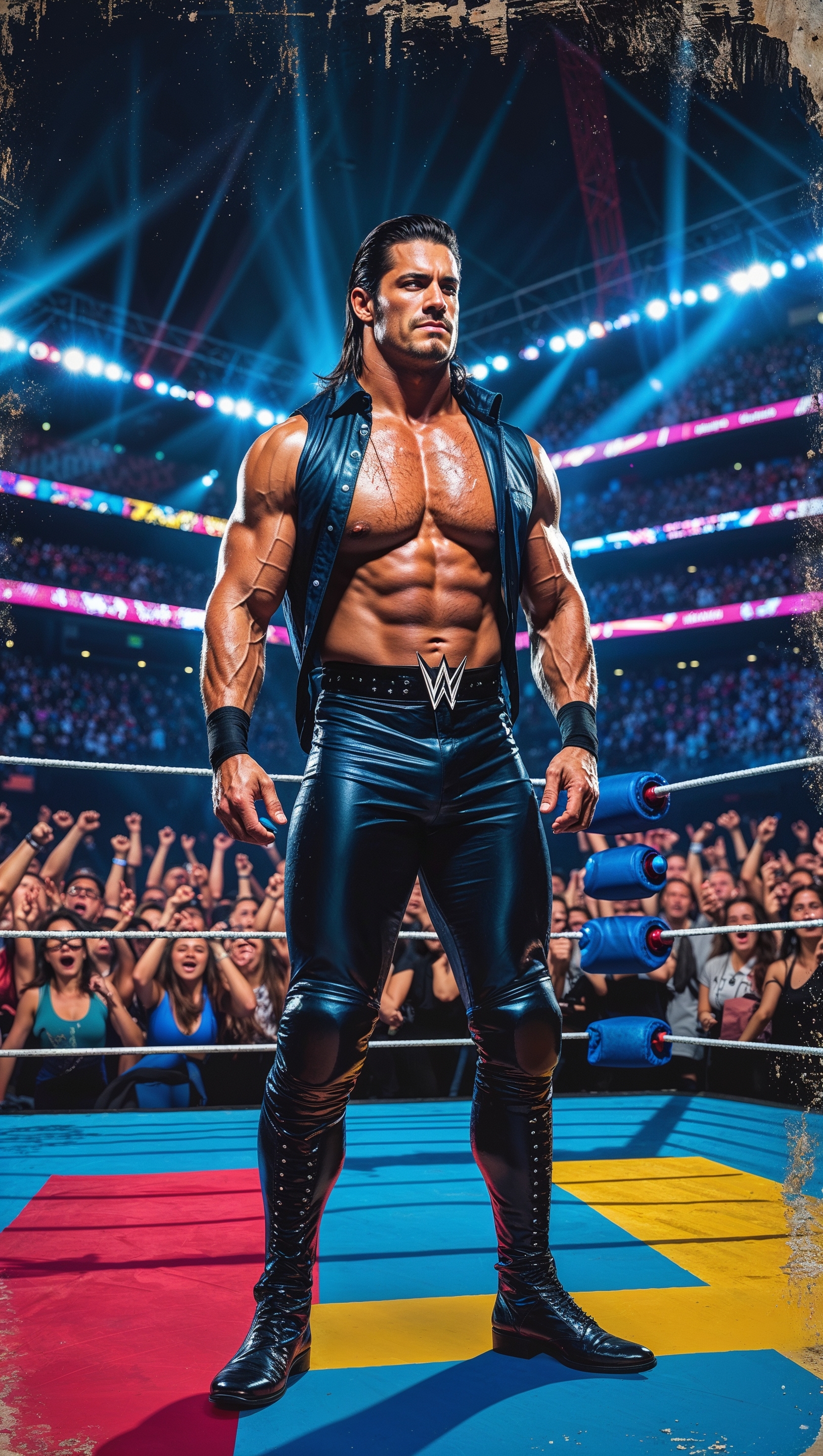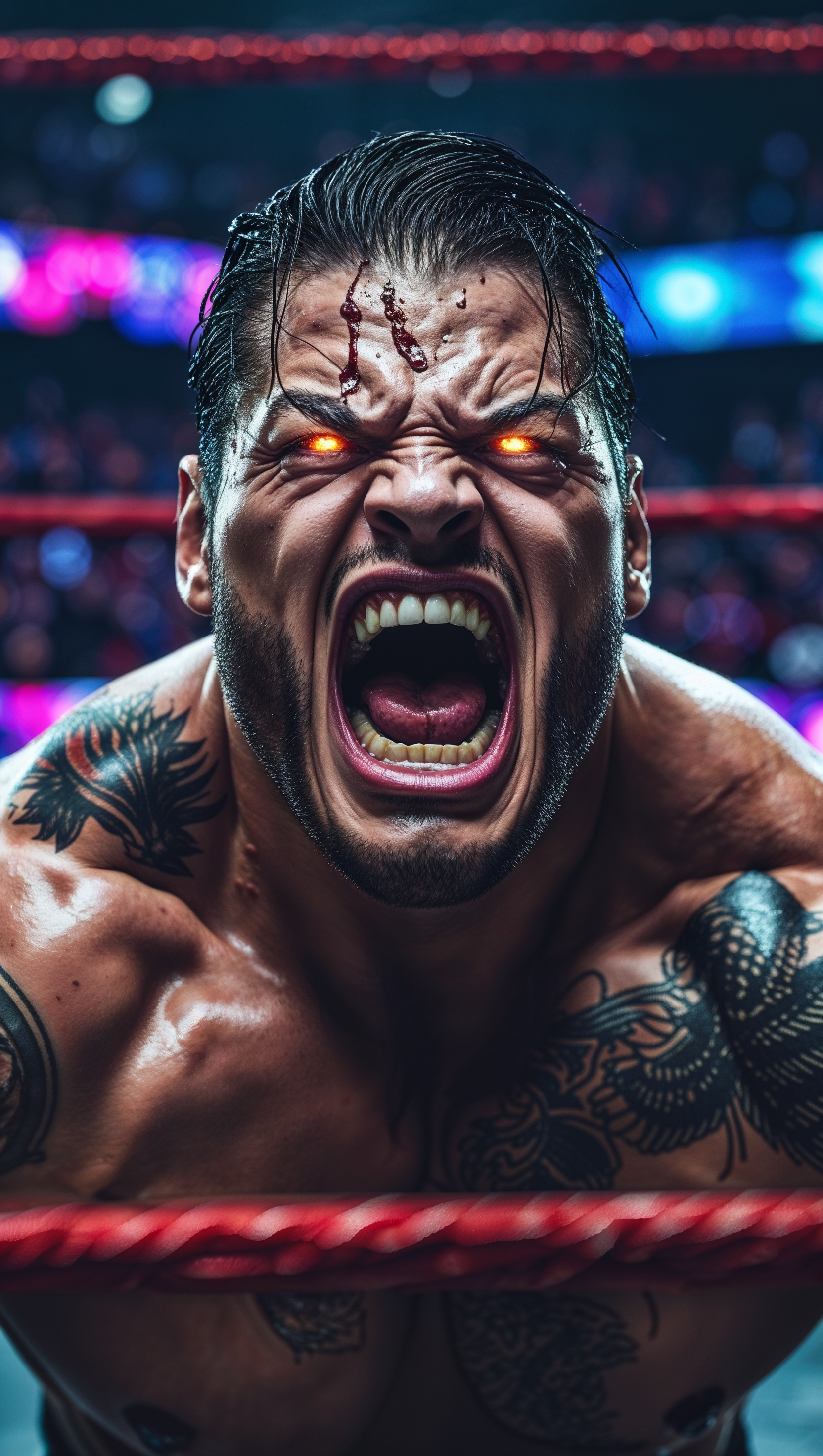 1664x2944 Postcard-style image of Roman Reigns in the wrestling ring
