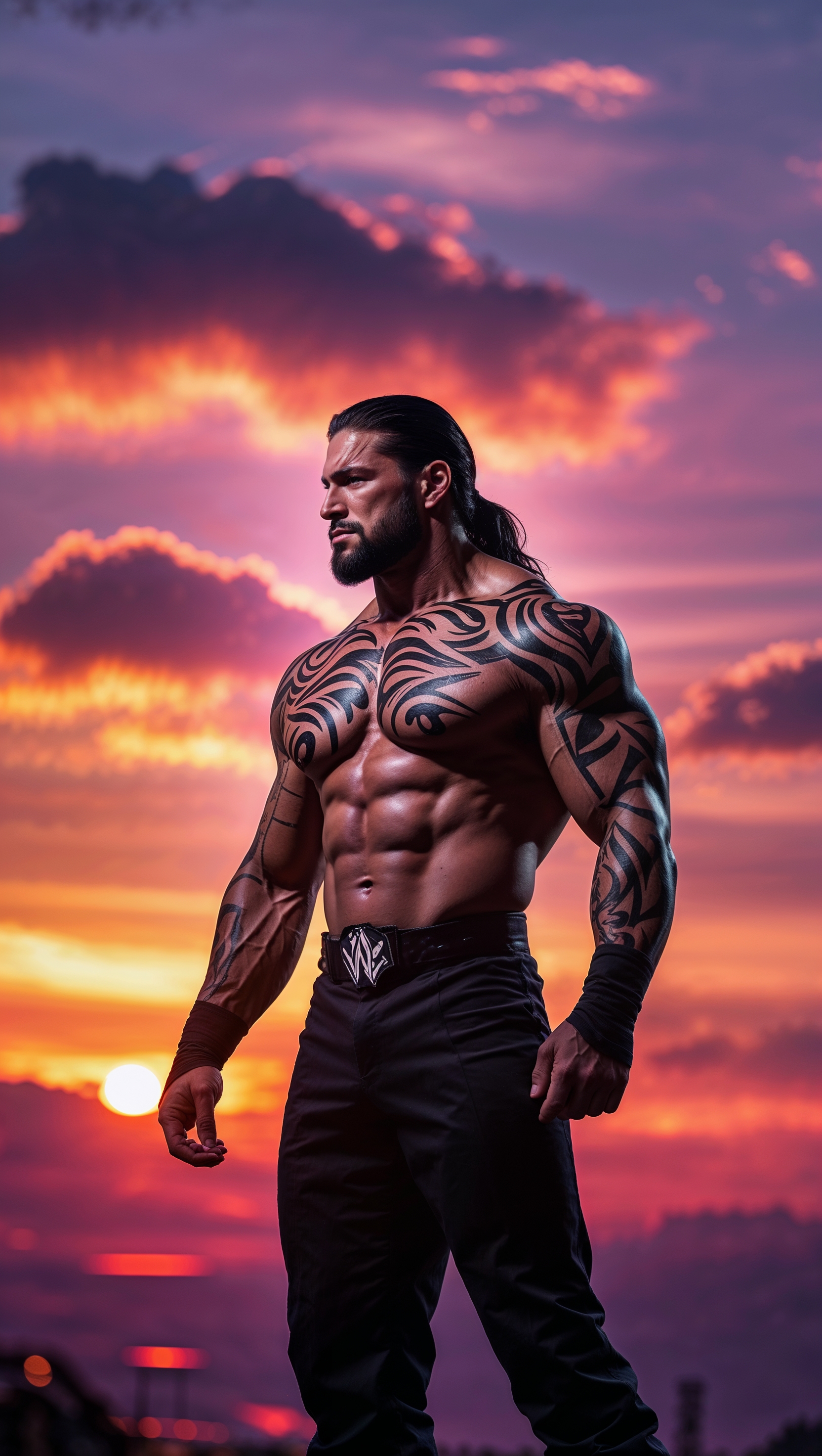 1664x2944 Silhouette of Roman Reigns with a sunset background