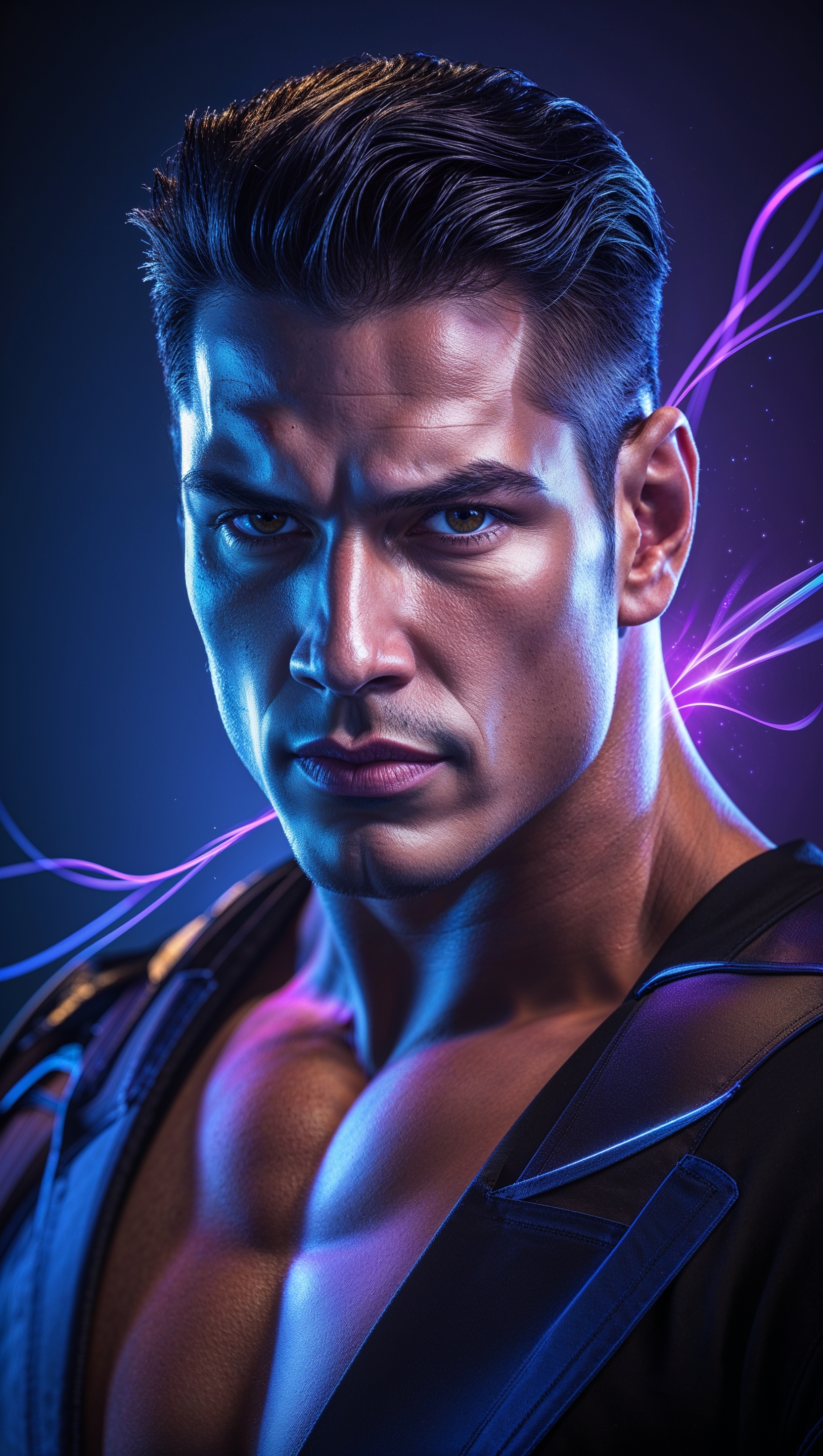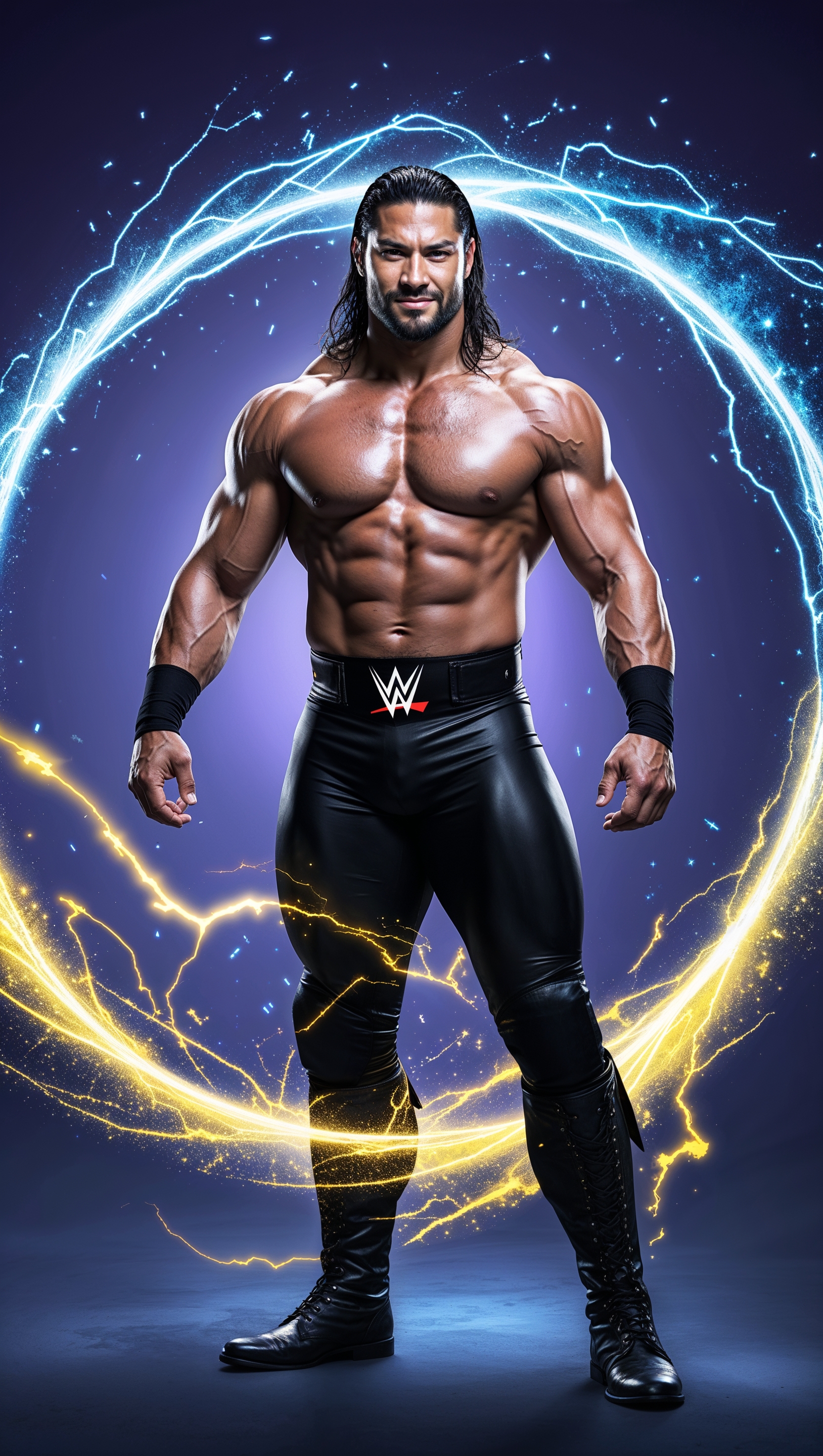 1664x2944 Roman Reigns with blue and purple light effects on a dark background