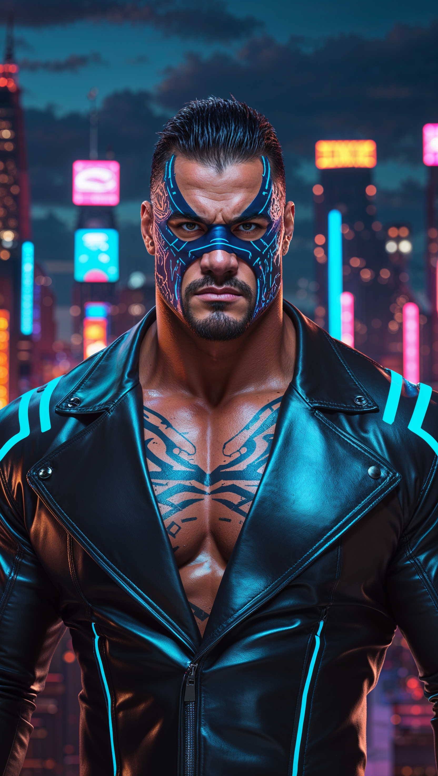1664x2944 Roman Reigns with a mask and cyberpunk effects