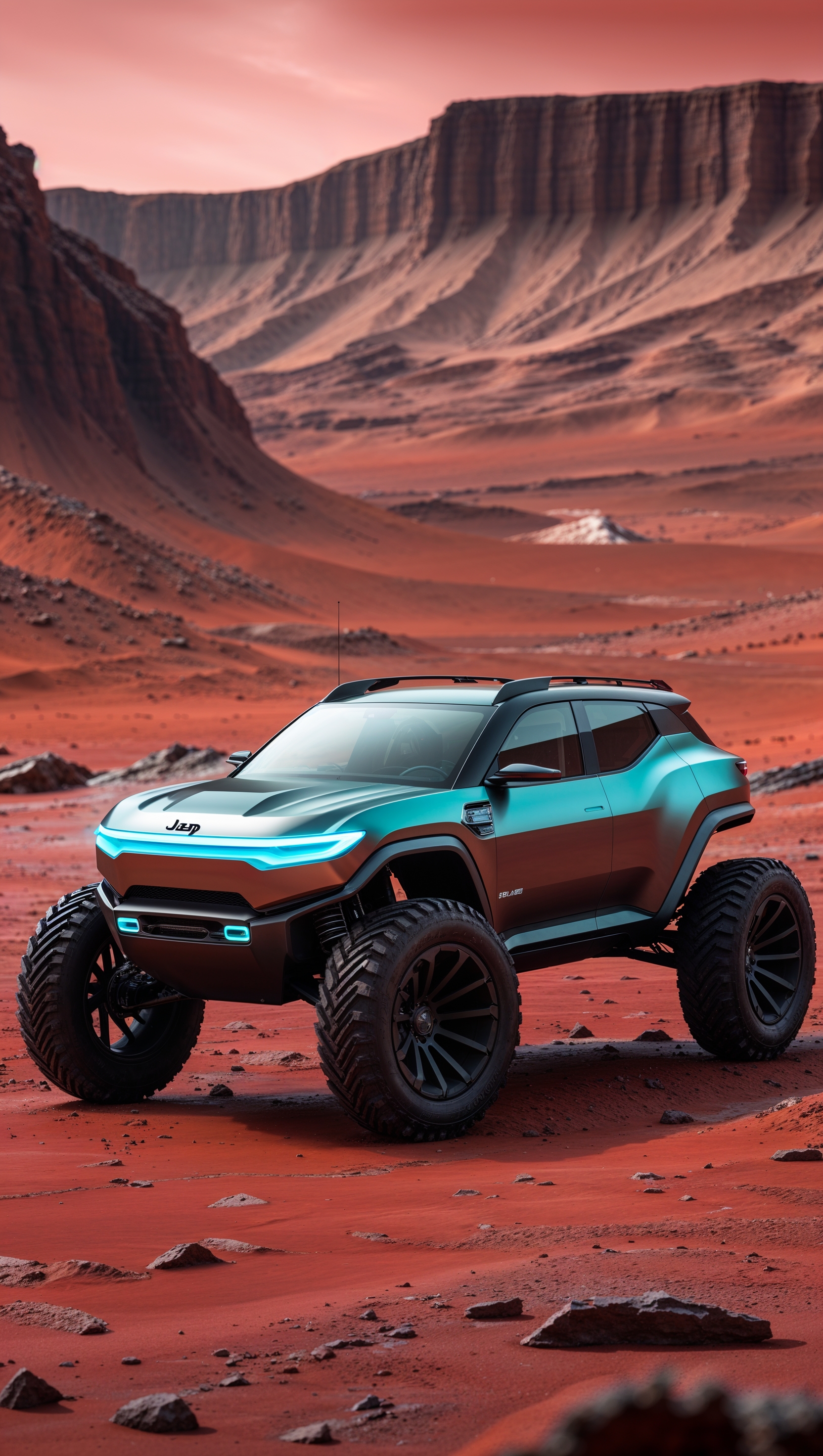 Futuristic Jeep concept on Mars, sci-fi vibe 1664x2944 Futuristic Jeep concept on Mars, sci-fi vibe