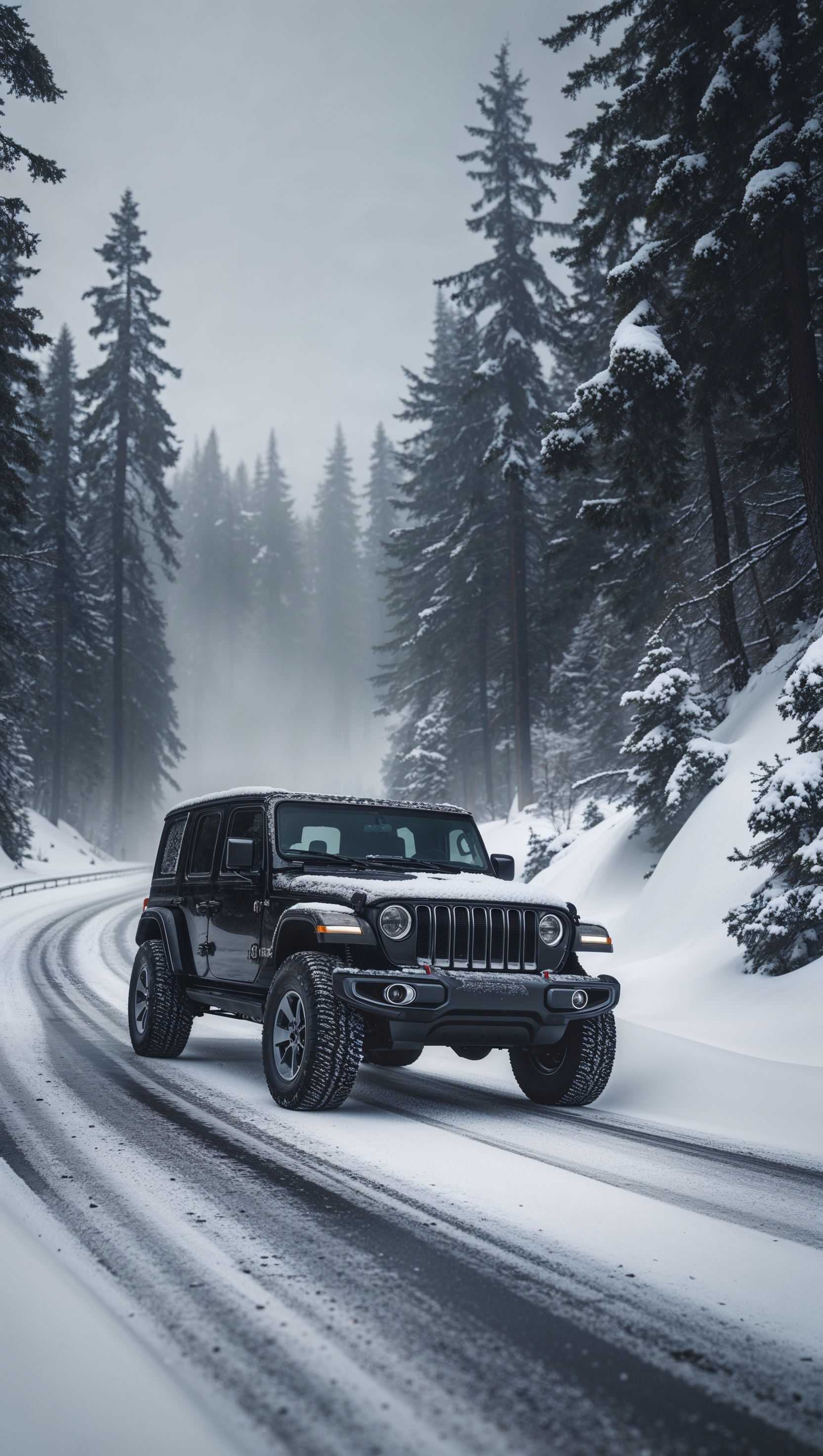 Black Jeep on a snowy mountain road, minimalist aesthetic 1664x2944 Black Jeep on a snowy mountain road, minimalist aesthetic