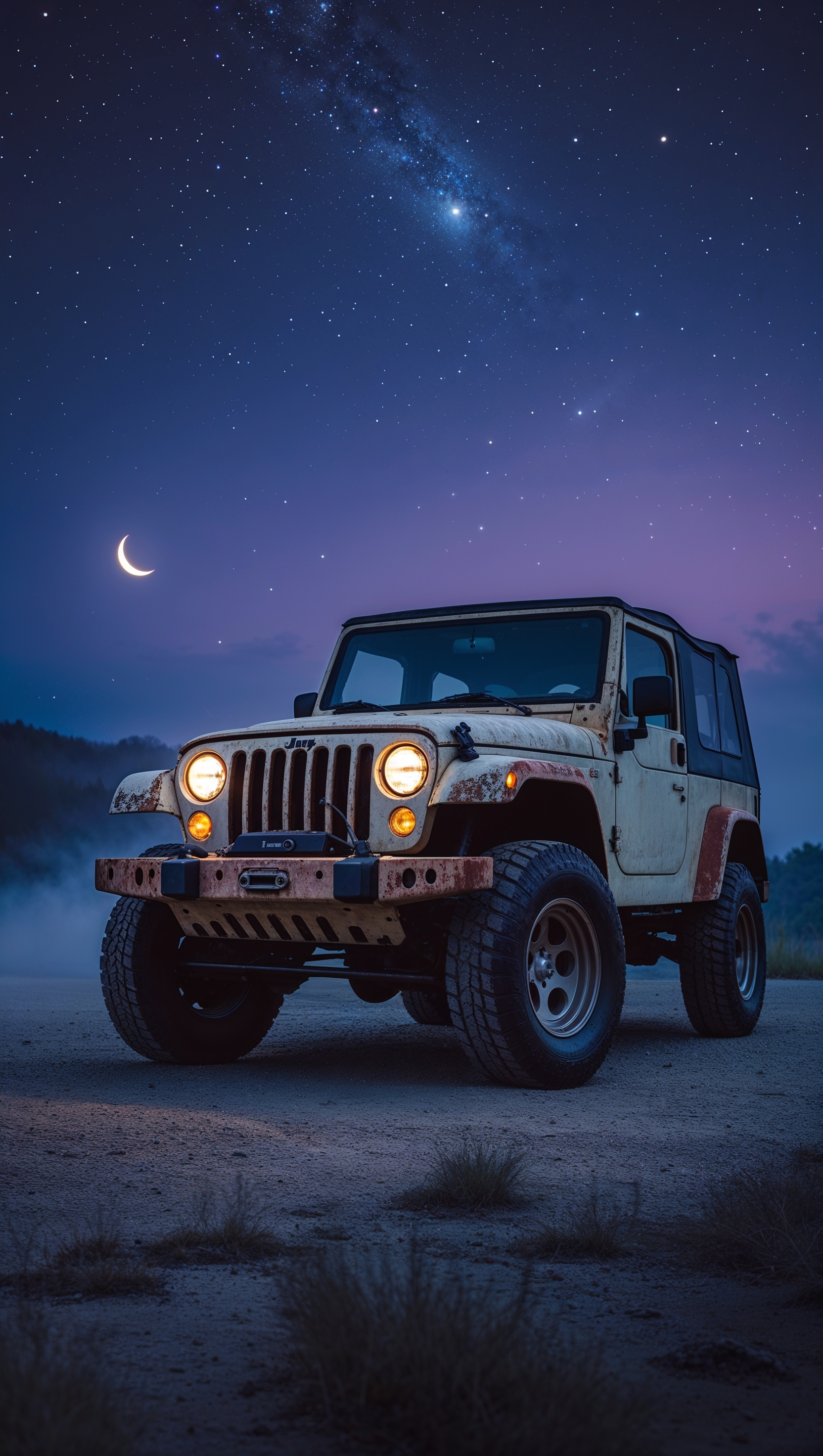 Jeep Wrangler parked under the stars, night sky background 1664x2944 Jeep Wrangler parked under the stars, night sky background
