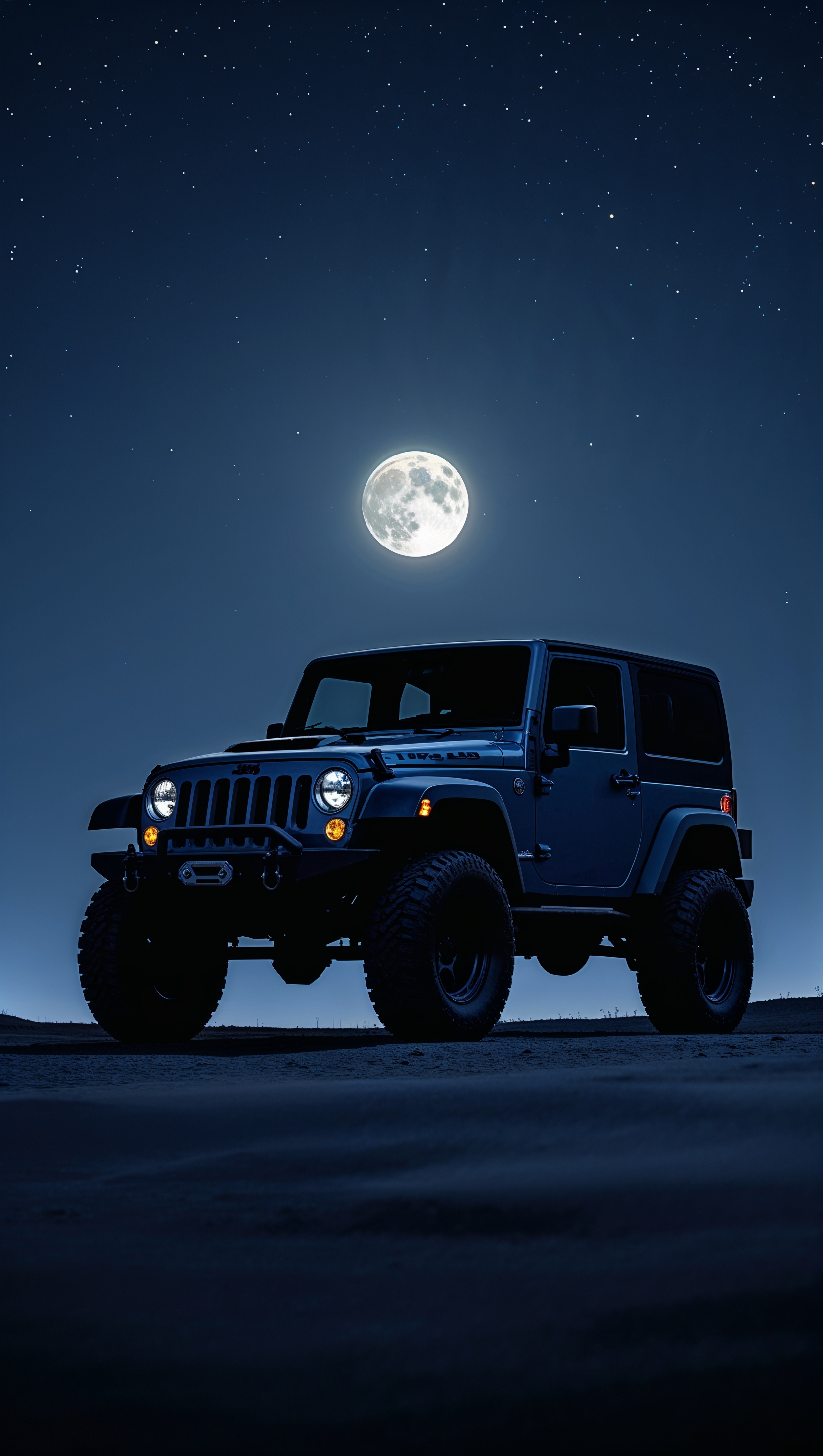 Minimalist silhouette of a Jeep under moonlight 1664x2944 Minimalist silhouette of a Jeep under moonlight