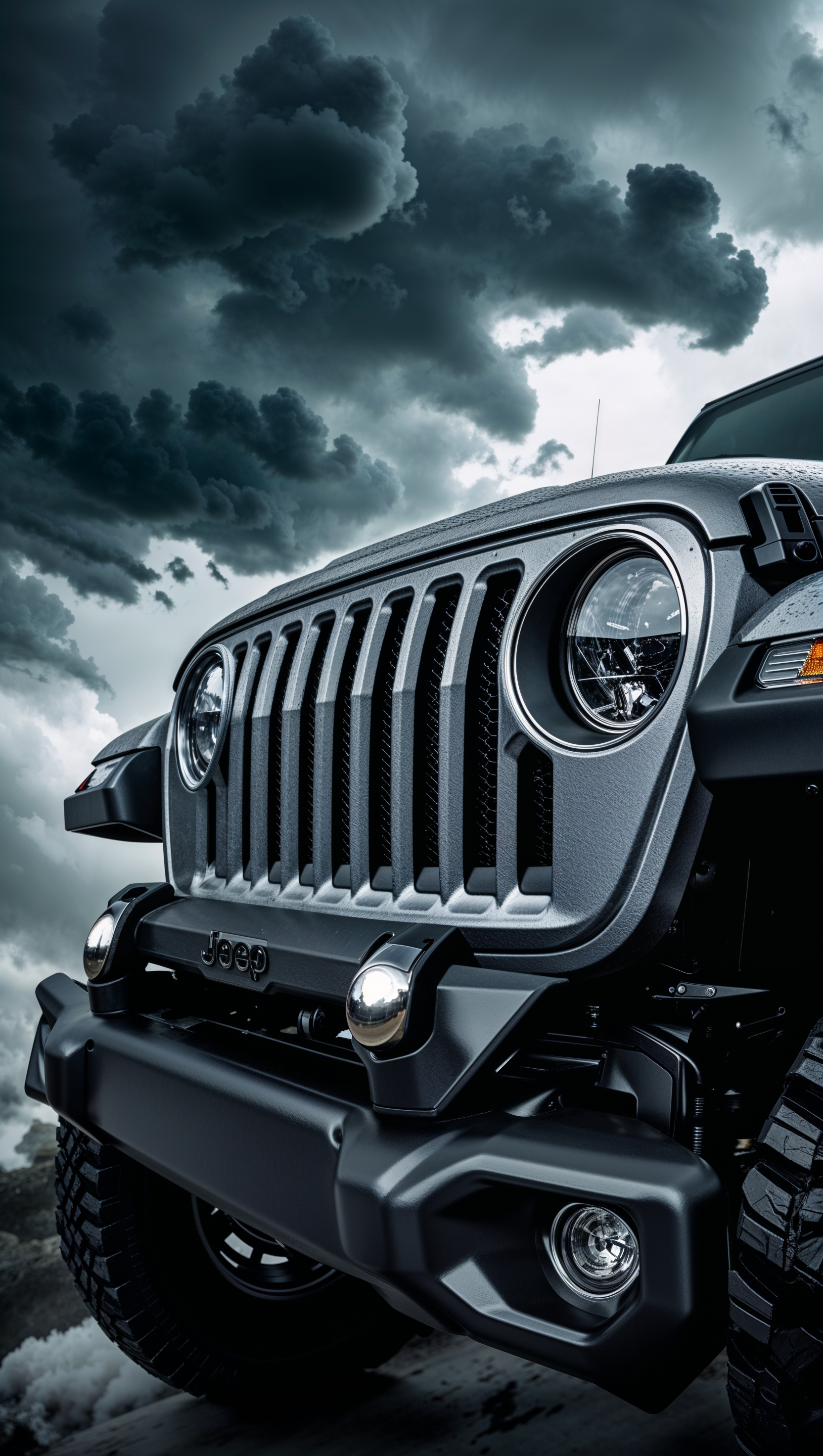 Close-up of a Jeep’s front grill with a stormy sky 1664x2944 Close-up of a Jeep’s front grill with a stormy sky