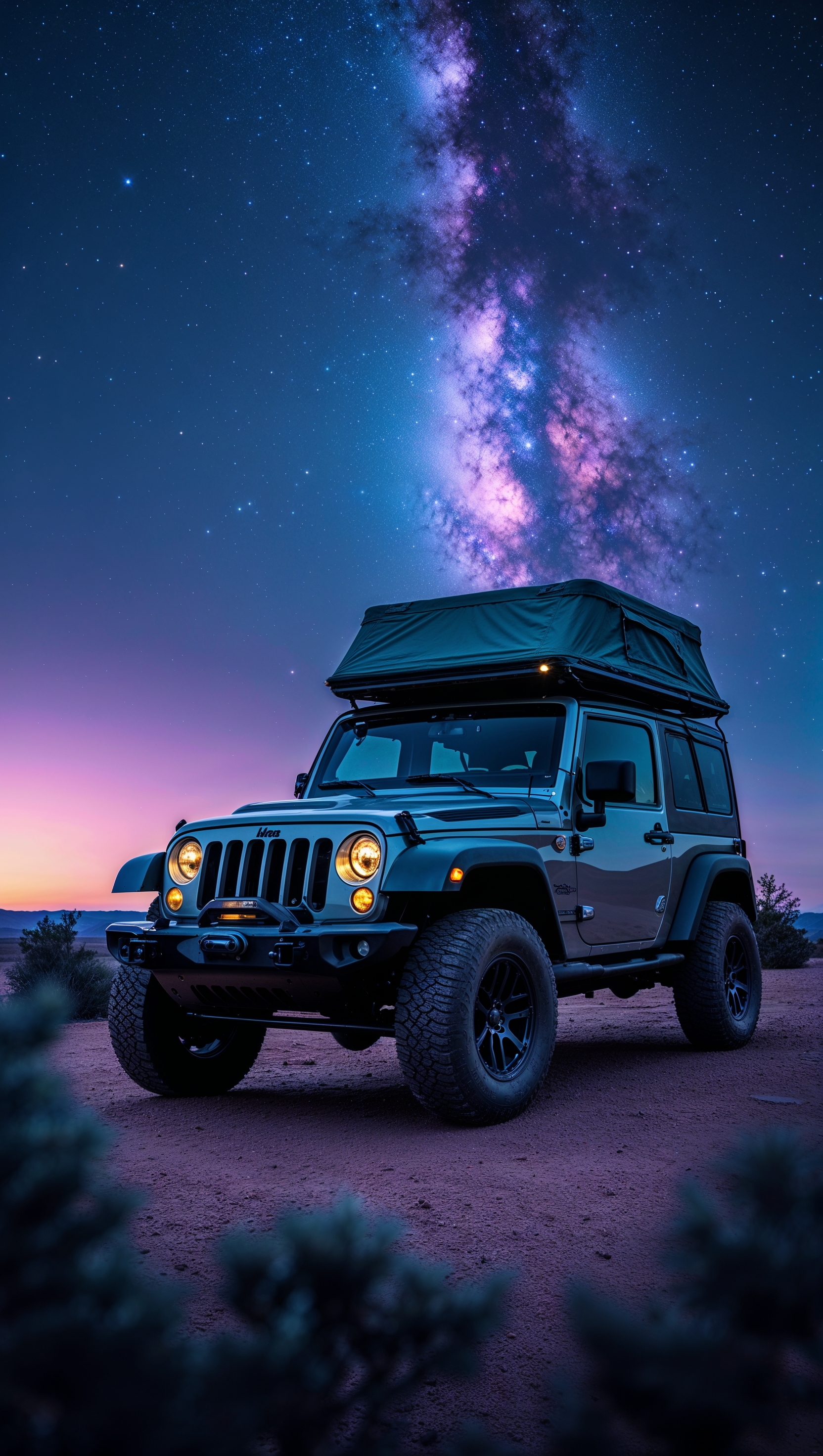Jeep with a rooftop tent under the Milky Way 1664x2944 Jeep with a rooftop tent under the Milky Way