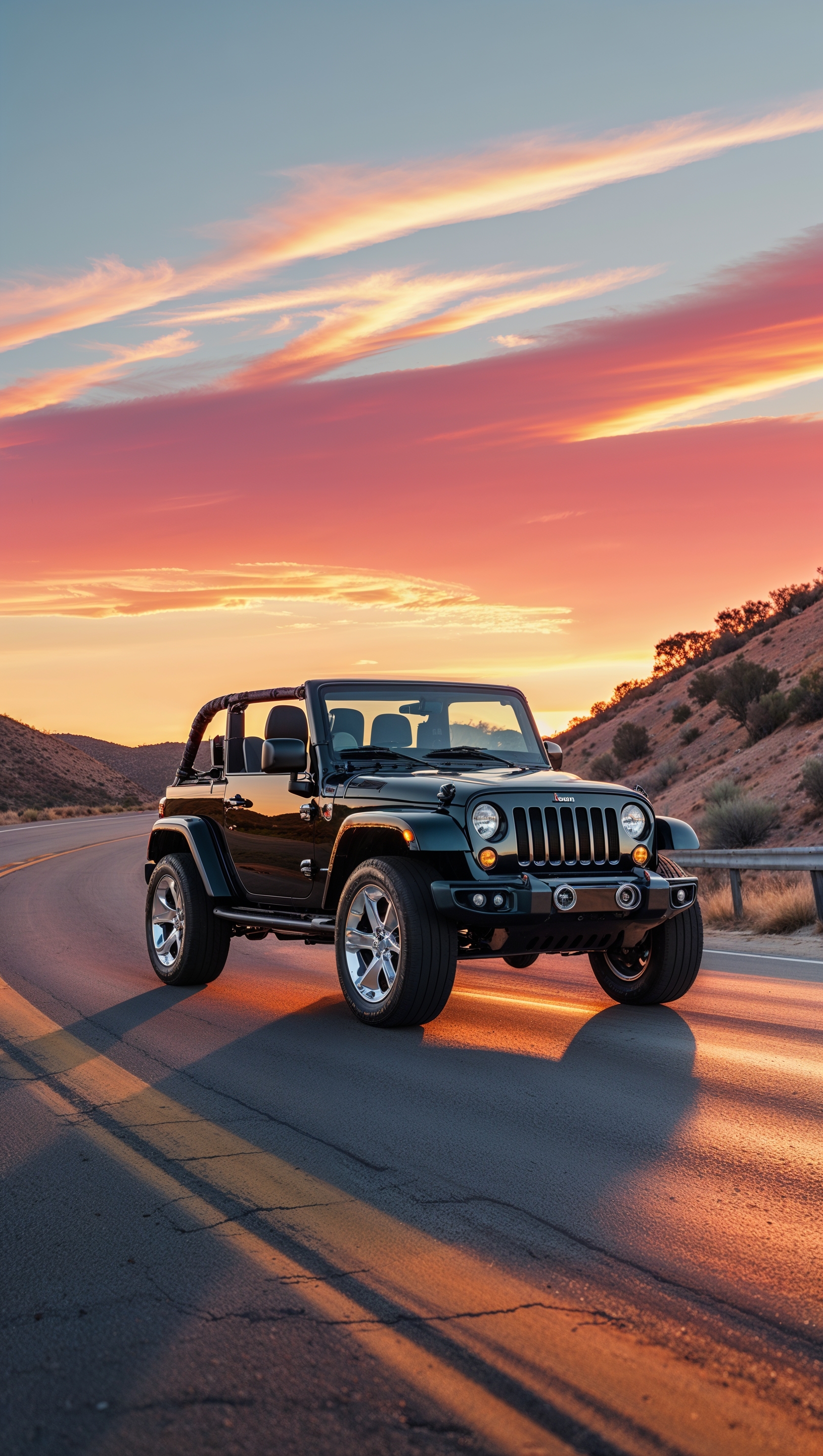 Black Jeep cruising down an empty highway at sunset 1664x2944 Black Jeep cruising down an empty highway at sunset
