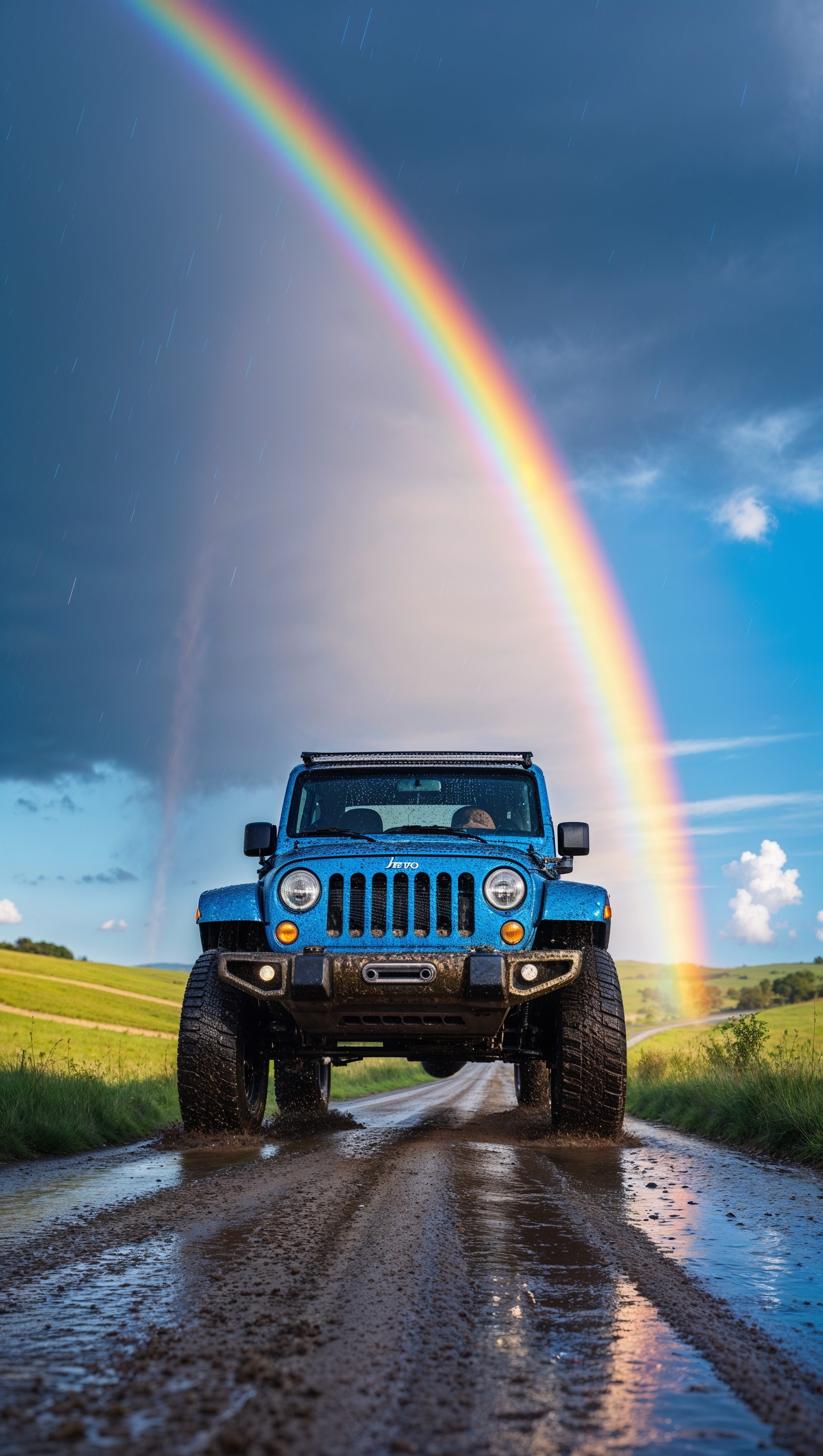 Jeep driving under a rainbow after the rain 1664x2944 Jeep driving under a rainbow after the rain