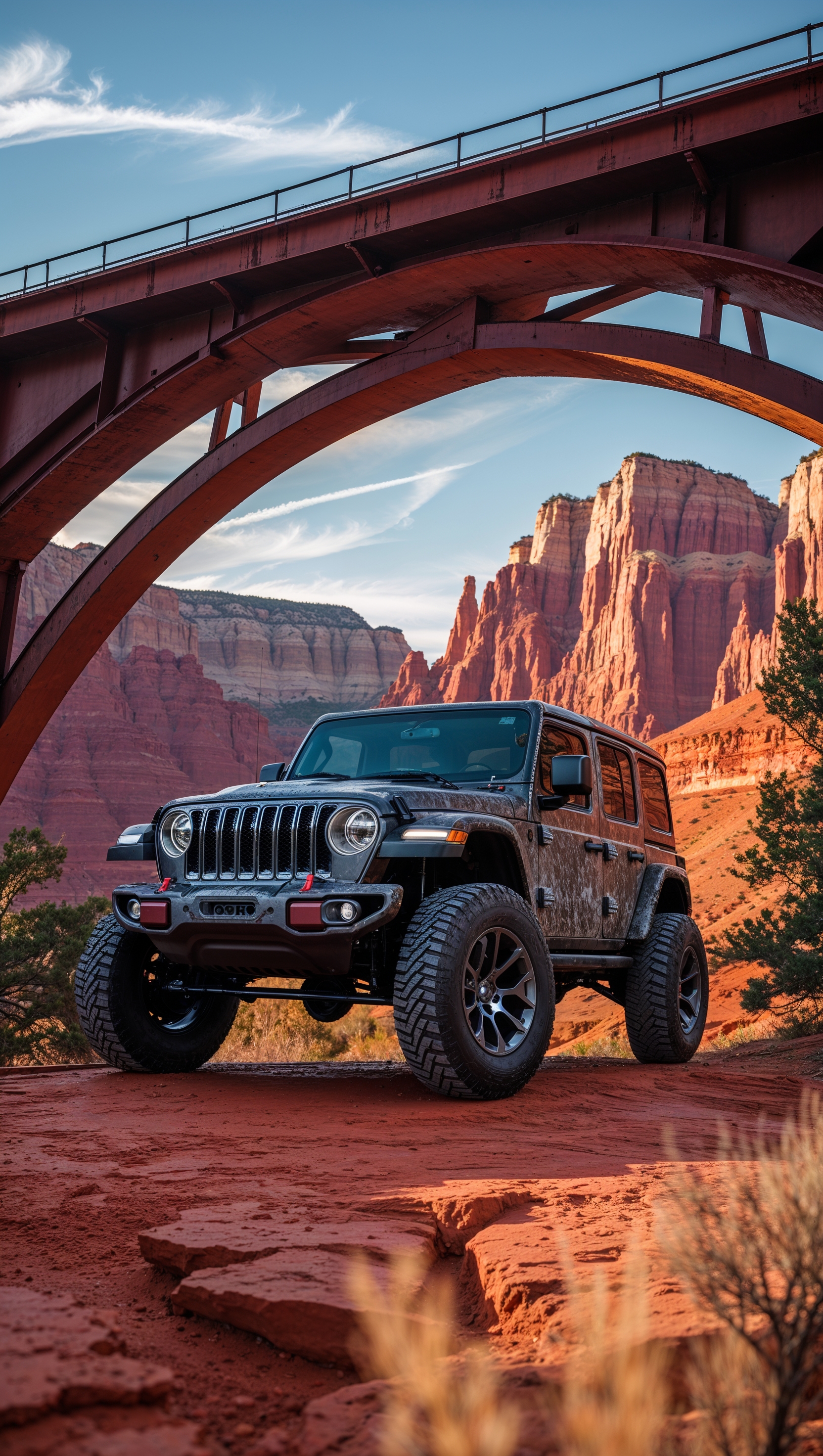 Jeep on a bridge overlooking a canyon 1664x2944 Jeep on a bridge overlooking a canyon