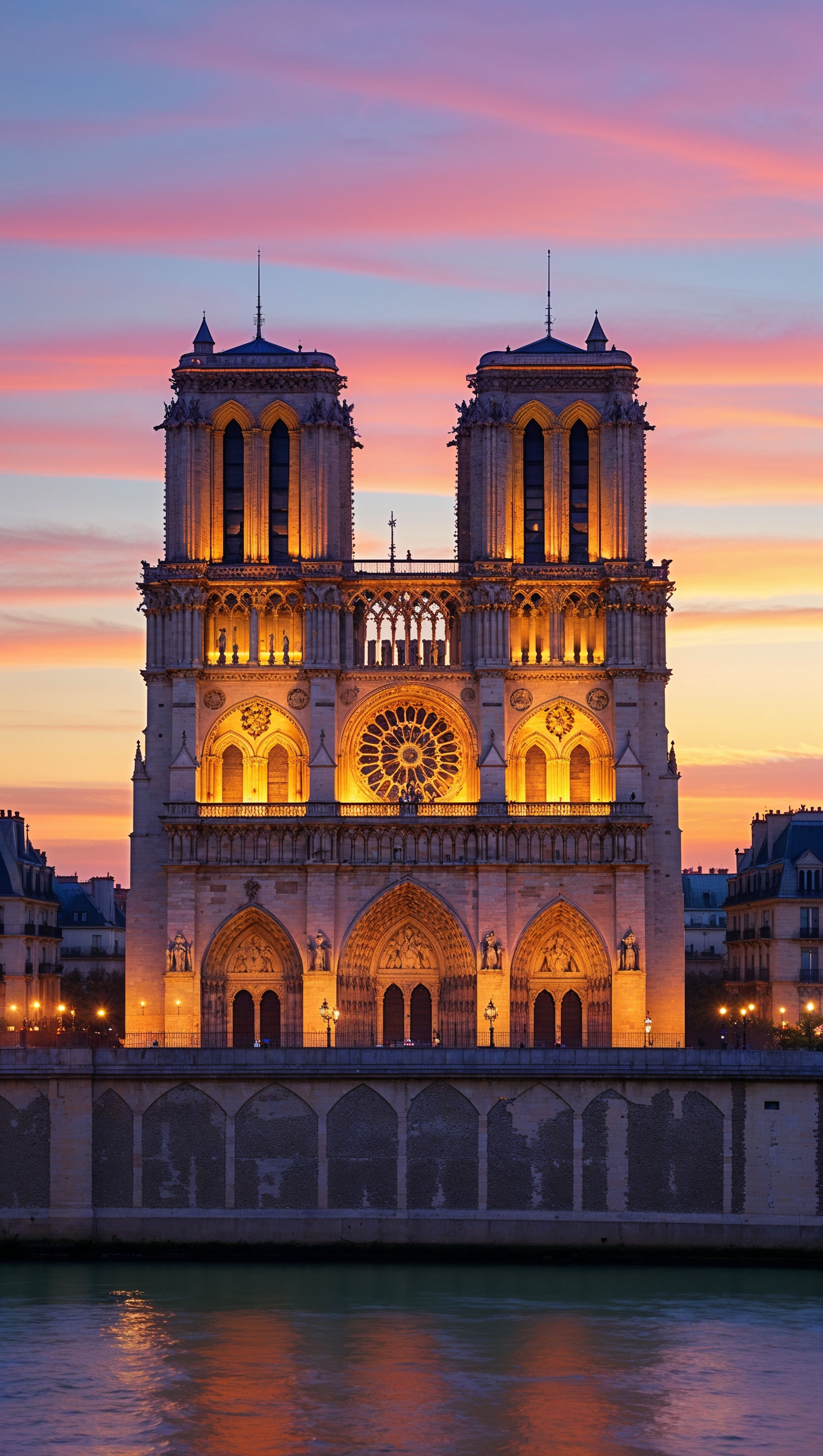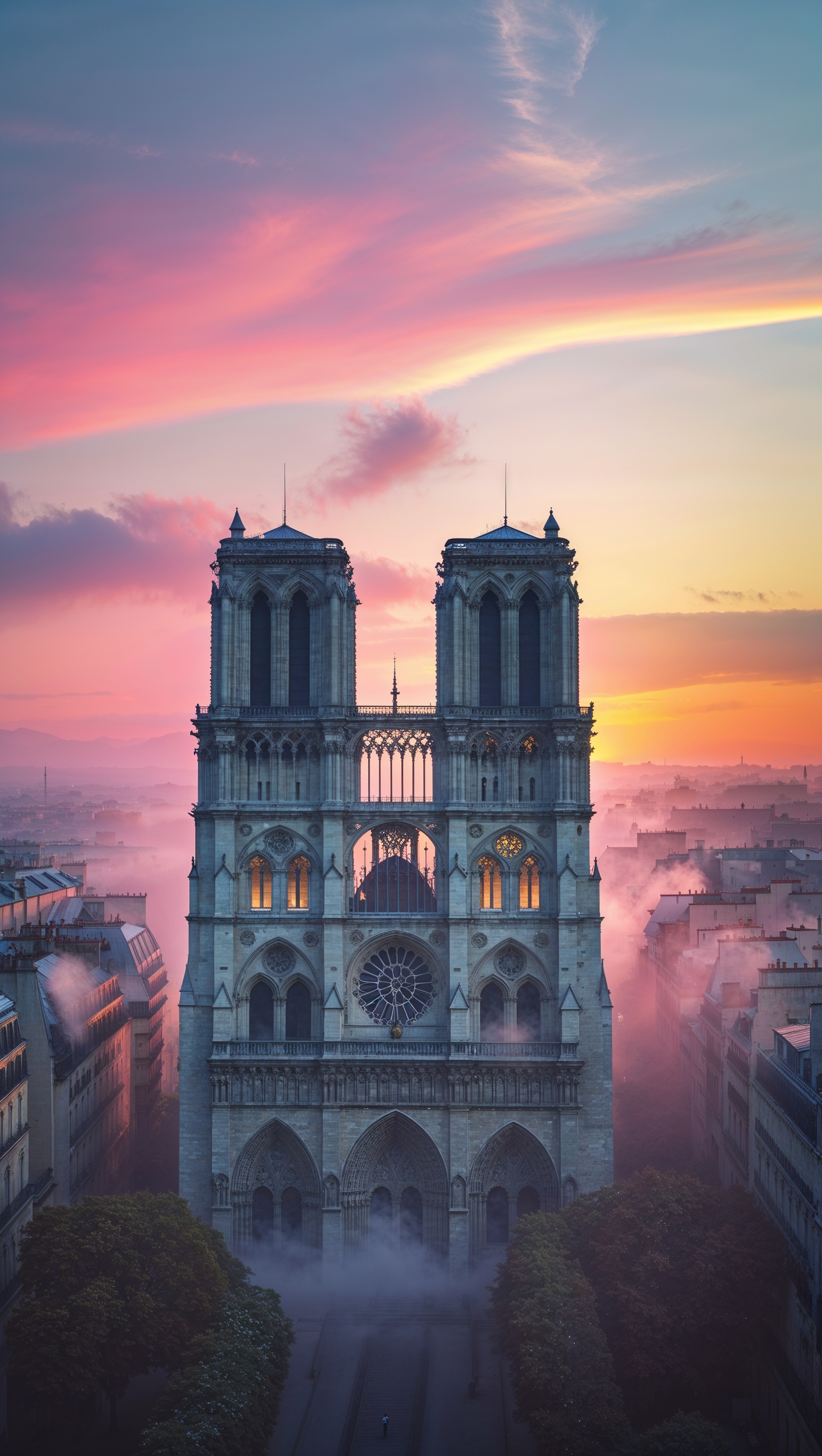 1664x2944 Notre Dame at sunrise with a colorful sky